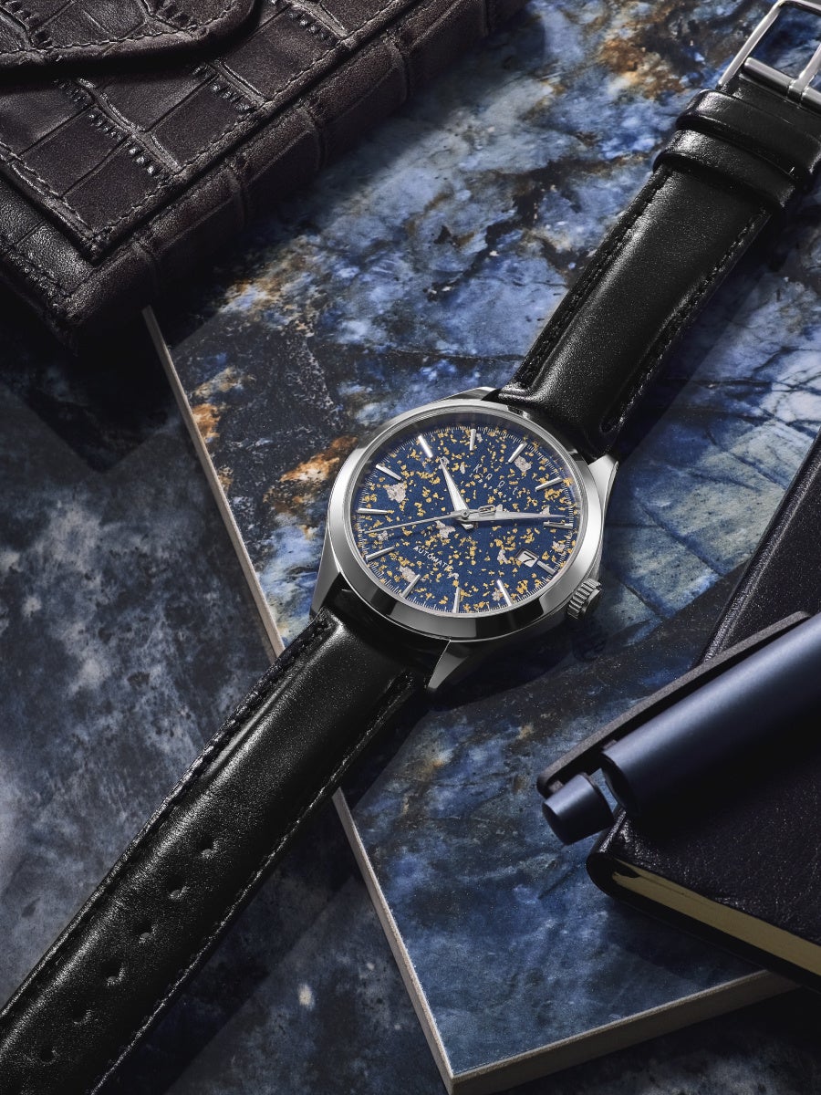 この伝統を現代に生かしているのが、1975年に金沢で創業した「箔一」です。高級工芸の枠を超えて化粧品や食器、建材にまで箔を応用し、金沢箔の新しい可能性を模索してきました。今回のモデル「金沢箔」は、その精神を腕時計に凝縮。単なる装飾の枠を超えた「日常に寄り添う芸術」として、日本の美意識をさらなる領域にまで広げます。