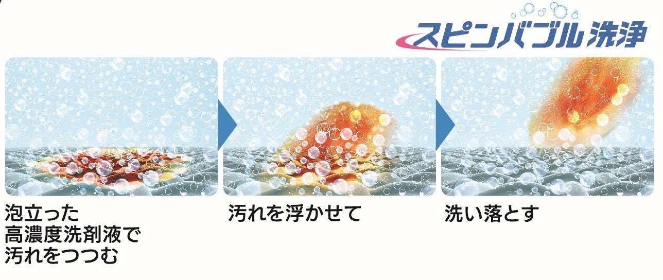高濃度の泡が繊維の奥まで浸透!低水位時に洗濯槽を高速回転させて、高濃度の洗剤液で泡を生成。繊維の奥まで浸透し汚れを落とします。