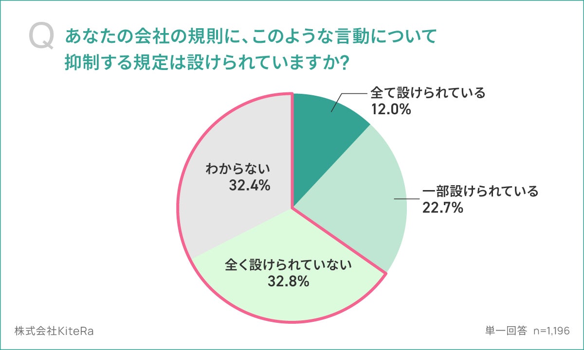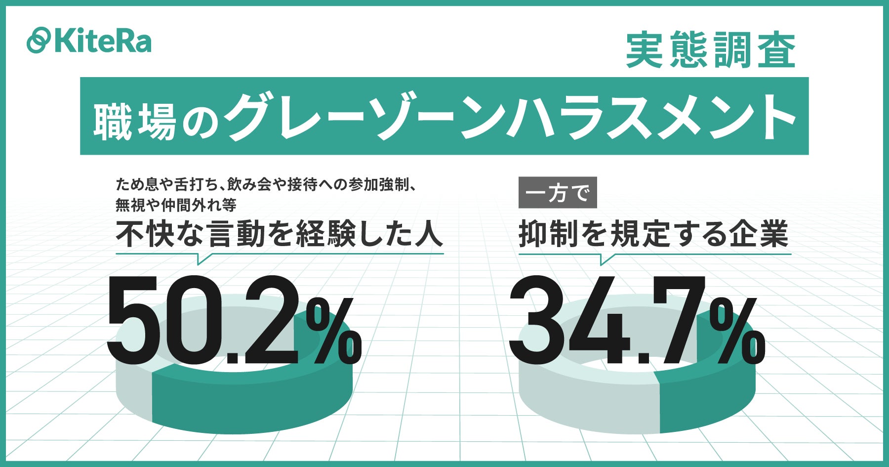 「安心して働ける世界をつくる」をミッションに掲げ、社内規程DXサービス「KiteRa Biz(キテラビズ)」と社労士向けサービス「KiteRa Pro(キテラプロ)」を提供する株式会社KiteRa(代表取締役 執行役員 CEO:植松隆史、本社:東京都港区、読み:キテラ、以下「当社」)は、全国のビジネスパーソン1,196名を対象とした「職場のグレーゾーンハラスメント実態と社内規程の機能性に関する調査」を実施しました。