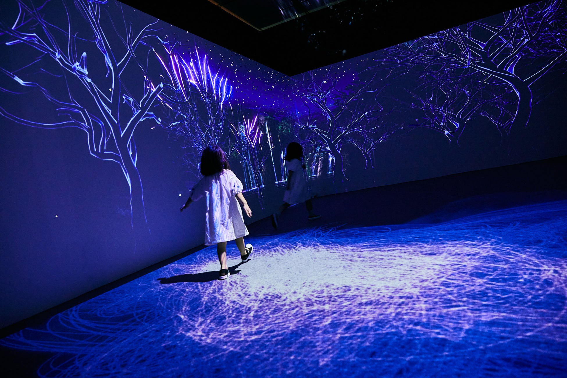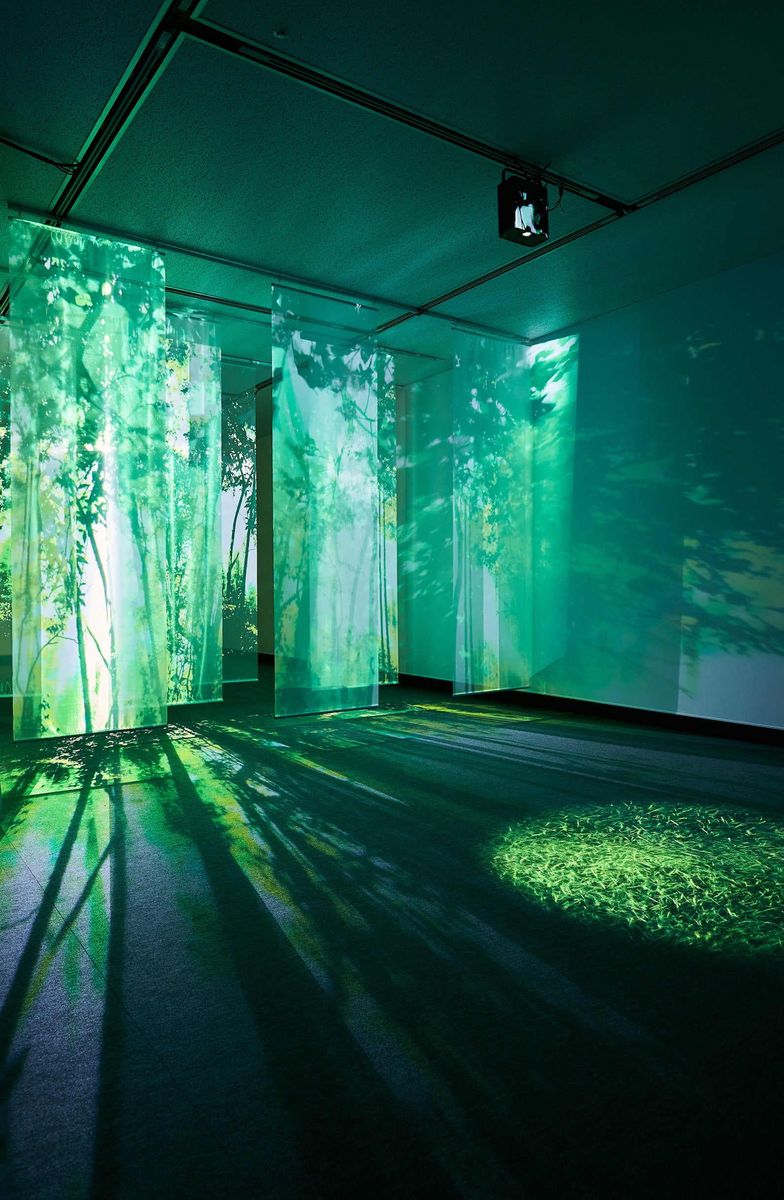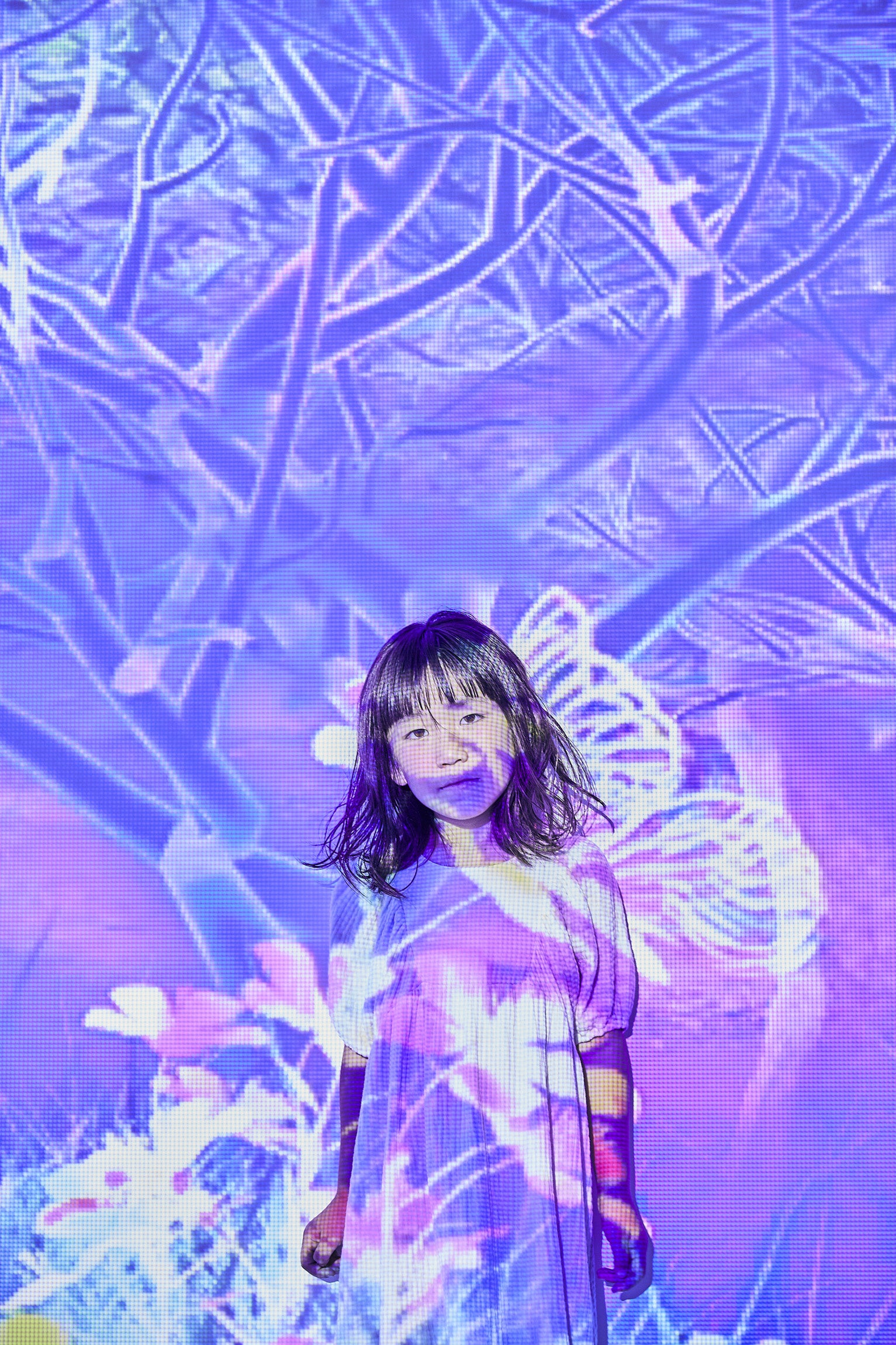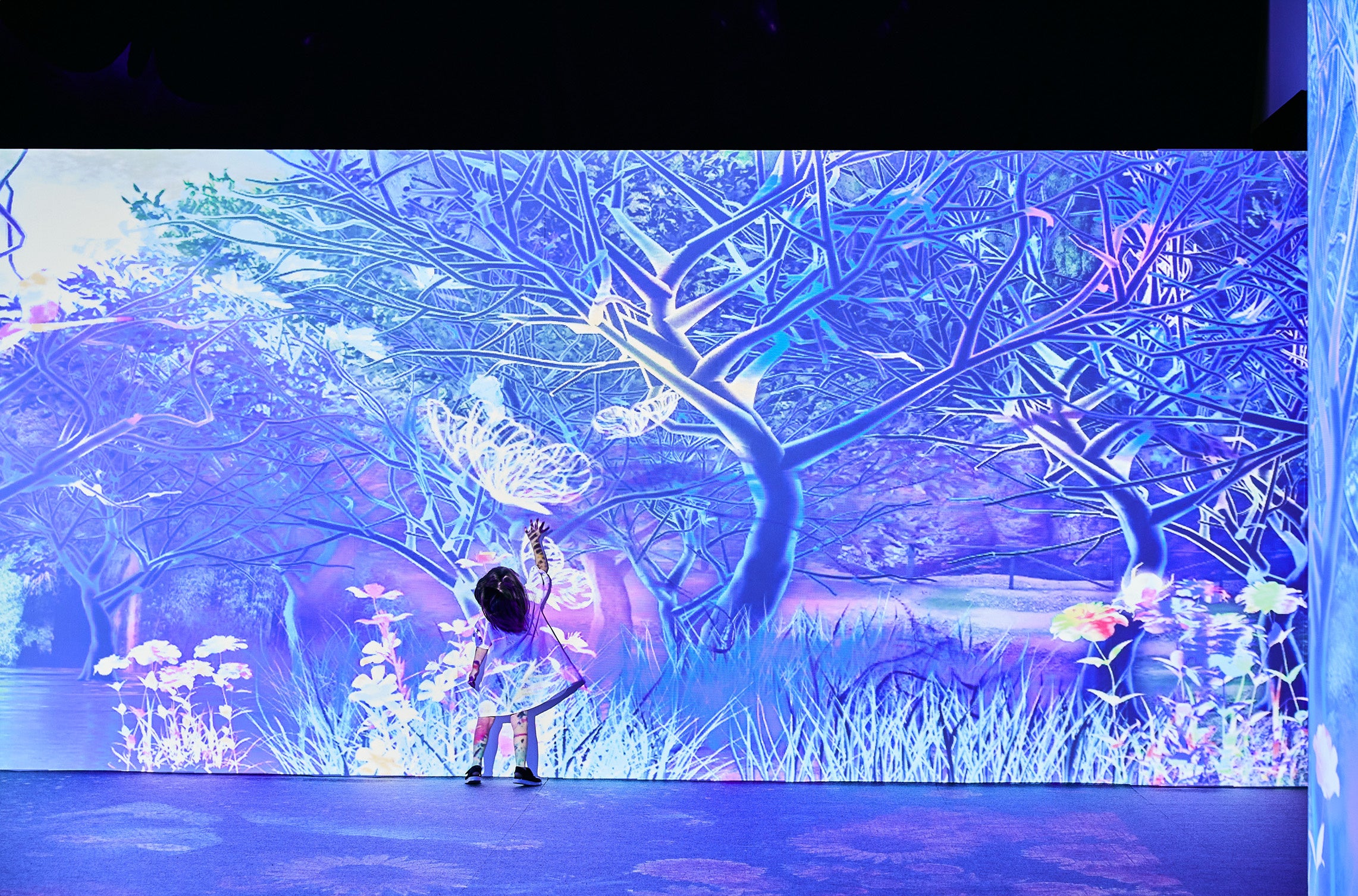 昆虫の楽園をテーマにしたプロジェクションマッピング演出。2022 年8月28日(日)まで、金山南ビル美術館棟(旧名古屋ボストン美術館)で公開中。
