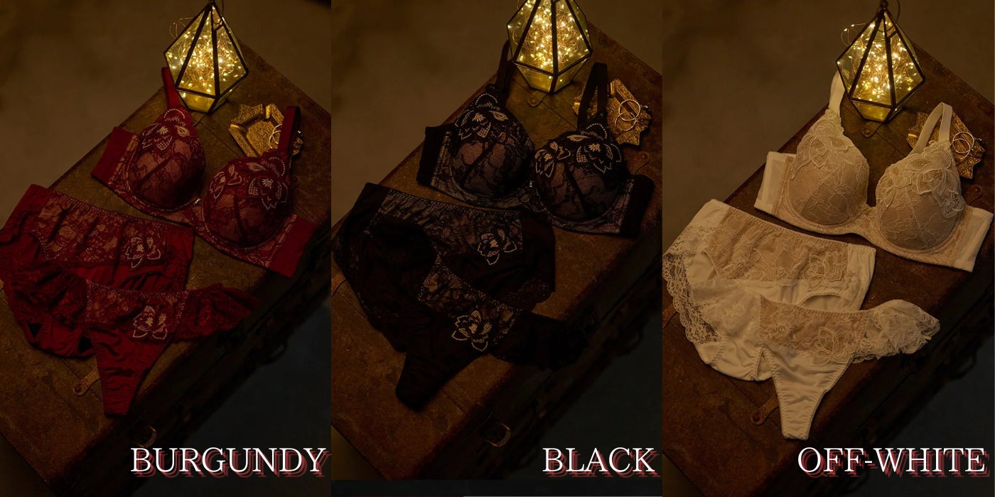 【新商品発売】特別な日ランジェリー2024登場!ペアショーツに人気のTバックも。リュクスな雰囲気の全3色展開【プラスサイズ下着専門店グラマープリンセス】