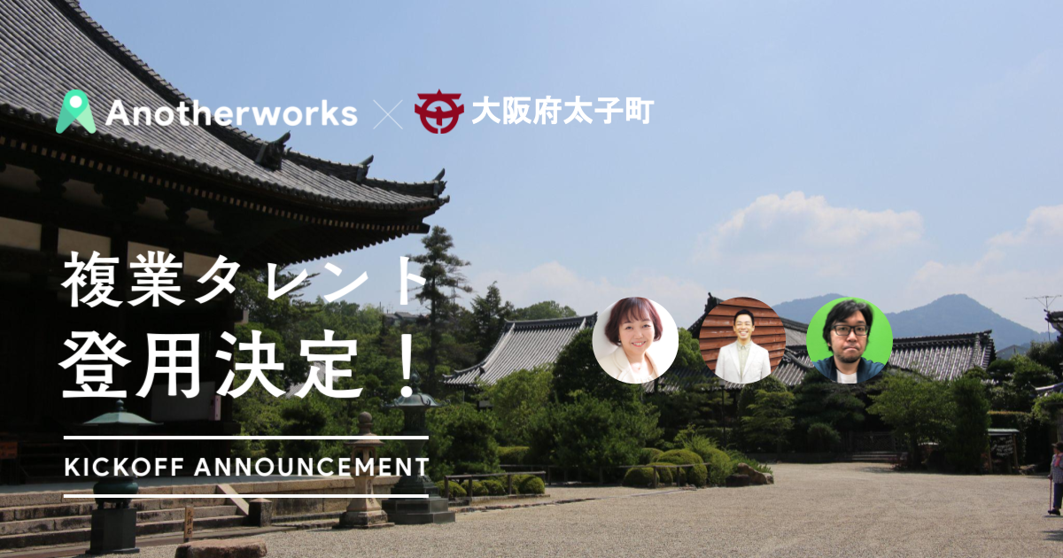 成功報酬無料のSaaS型複業マッチングプラットフォーム「複業クラウド」を展開する株式会社Another works(本社:東京都渋谷区、代表取締役CEO:大林 尚朝)は、2022年2月3日、大阪府太子町の役場内に複業人材を登用する実証実験において、即戦力の複業アドバイザー3名の参画が決定したことをお知らせいたします。大阪府太子町での取り組みは、Another worksが推進する自治体での実証実験における全自治体連携23のうち21例目となります。