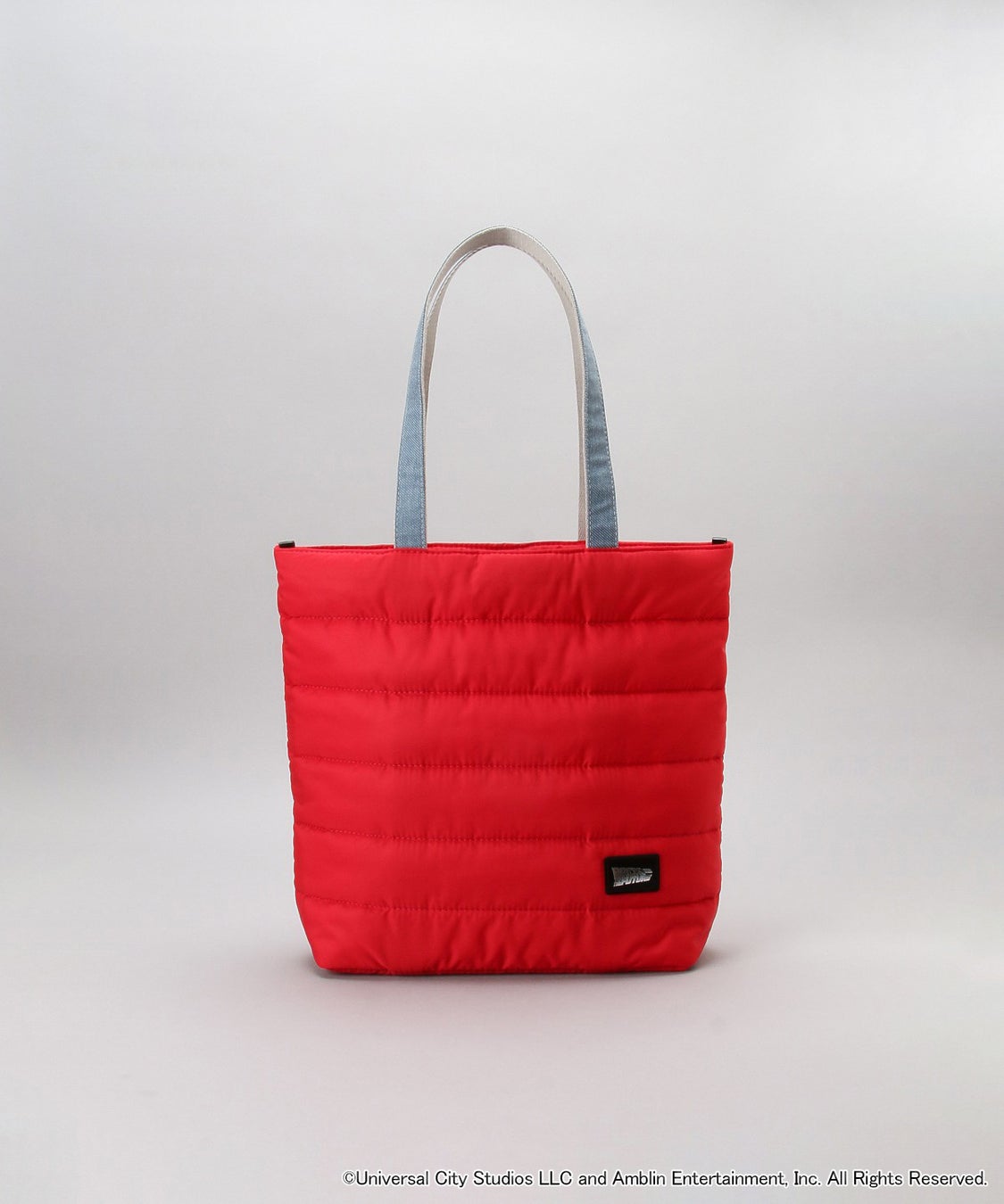 持ち手はウォッシュ加工のデニム、バッグ本体はダウンベストをイメージしたレッドカラー。