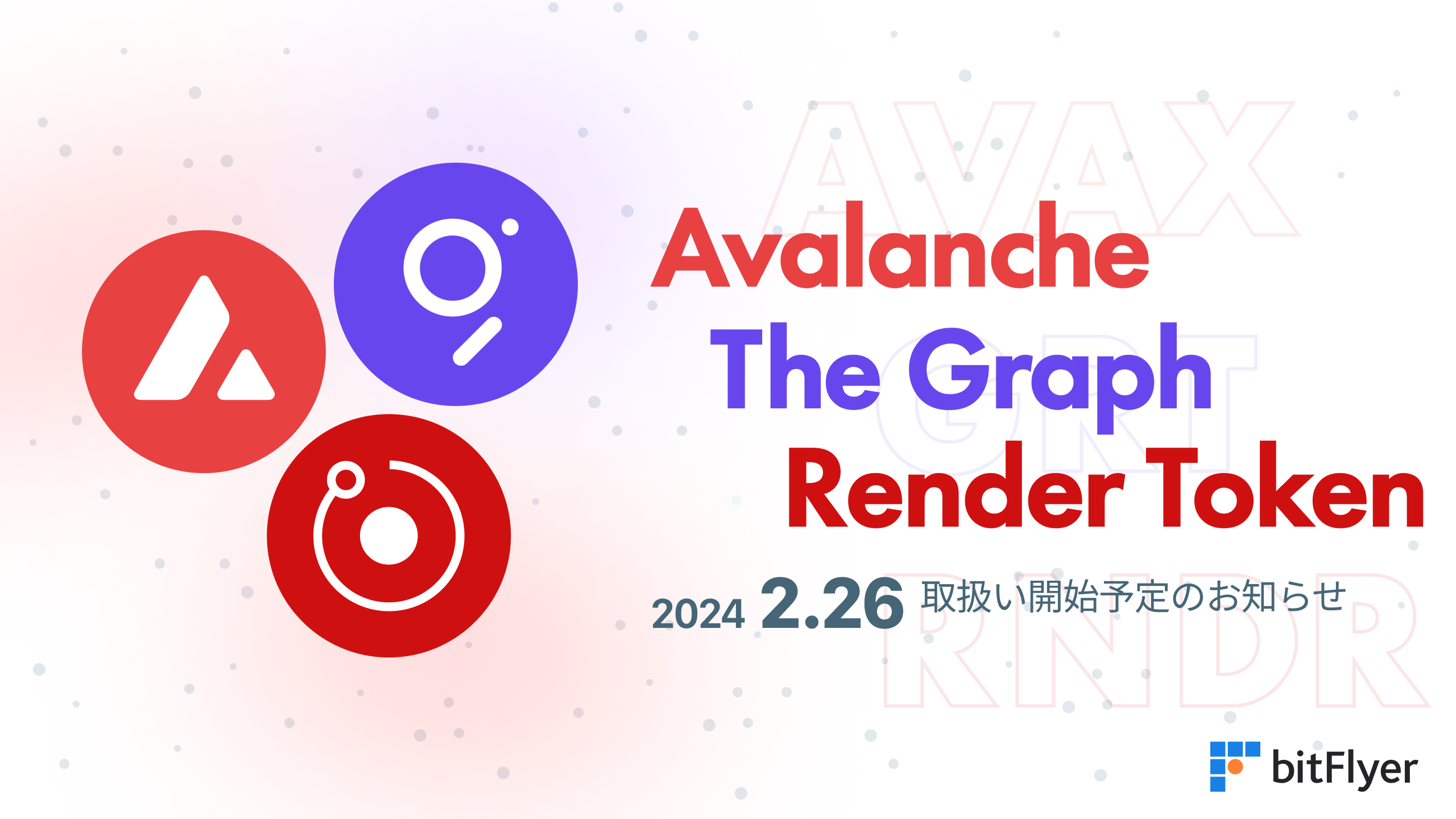 新規暗号資産「アバランチ(AVAX)」「ザ・グラフ(GRT)」「レンダートークン(RNDR)」近日取扱い開始のお知らせ