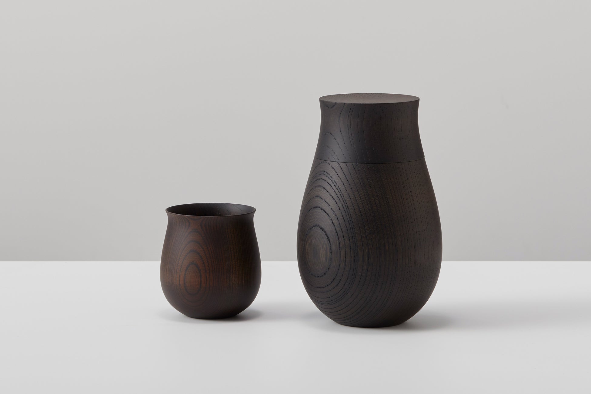 世界一の木地轆轤(きじろくろ)挽きの技術を持つと言われる、山中漆器の木地師。その高い技術と造形力で漆器を作り出している我戸幹男商店と、プロダクトデザイナーの竹内茂一郎氏、そしてブルーボトルコーヒーのコラボレーションによって誕生したキャニスターとカップです。一つ一つ丁寧に挽き上げた繊細で優美な曲線と、無垢のけやきの重厚感のあるデザインは、まるでオブジェのように静かに、そして穏やかに空間に佇みます。キャニスターは熟練の技により、本体と蓋が隙間なく閉まるよう高い精度で作られており、密閉性が高く外気の影響を受けにくいため、コーヒー豆の保存に適しています。カップは木の温もりを感じられる柔らかな曲線で、手に馴染みやすく、香りを楽しんでいただけるよう口が開いた作りでコーヒーのための特別な器です。一緒にお使いいただくことでご自宅でのコーヒー体験をより一層豊かなものにしてくれます。