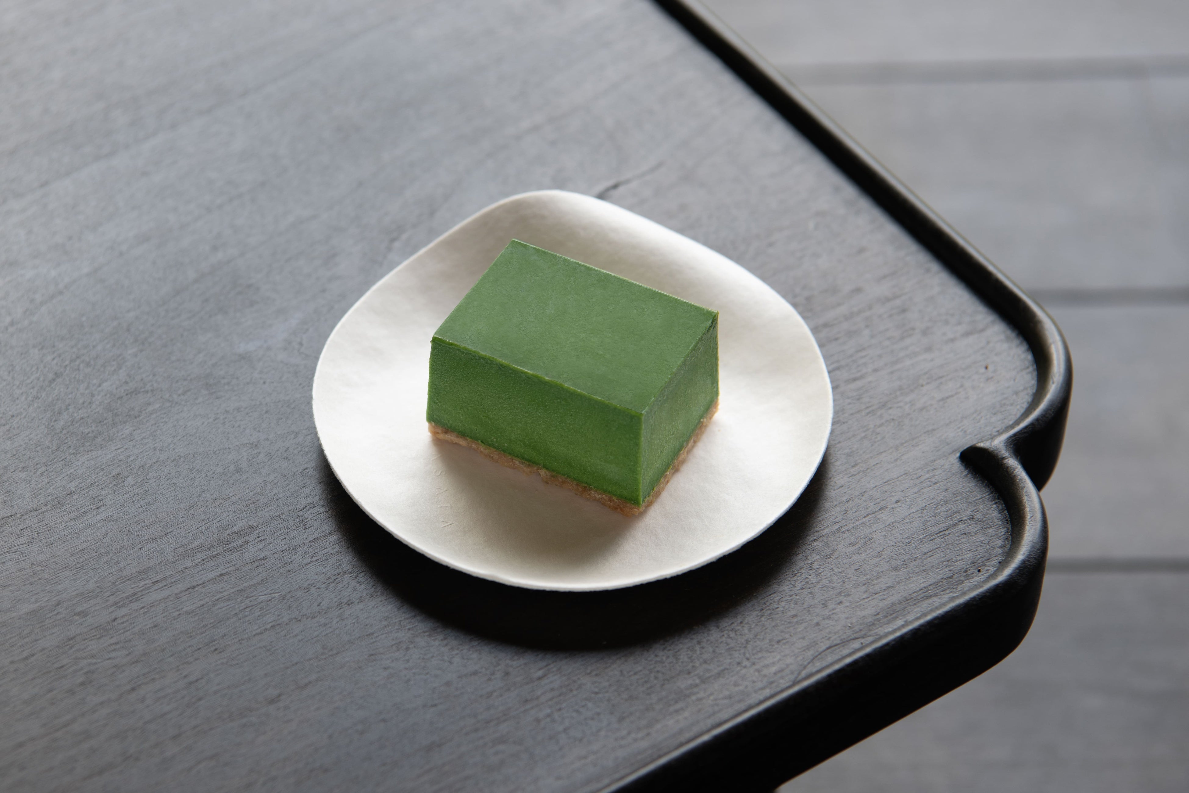 ホワイトチョコレートをベースに、抹茶ラテでもコラボレートしている「祇園辻利」の抹茶を使用した「抹茶 テリーヌ ショコラ」。抹茶の濃厚さや若葉のような青々しさを感じることができる、口溶けが良いテリーヌショコラです。ほんのりと香る山椒がアクセントとなり、さらに抹茶の香りを引き立てます。同じく限定の抹茶ラテはもちろん、コーヒーとの相性もぴったりなので、ぜひここでしか味わえない特別なペアリングをお楽しみください。