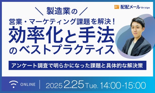 株式会社ラクス(本社:東京都渋谷区、代表取締役:中村 崇則)が提供する商談獲得特化型ツール「配配メールBridge」は、2/25(火)にオンラインセミナー「製造業の営業・マーケティング課題を解決!効率化と手法のベストプラクティス」を開催いたします。