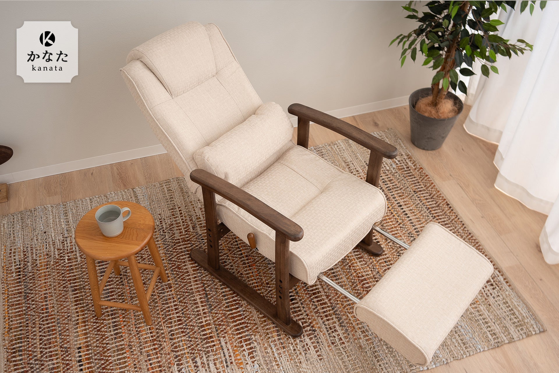 オットマン一体型で、リクライニングや高さ調節が自由自在。健康家具ブランドEMOORがオットマン付き高機能高座椅子「かなた」ポケットコイル座面タイプを販売開始!