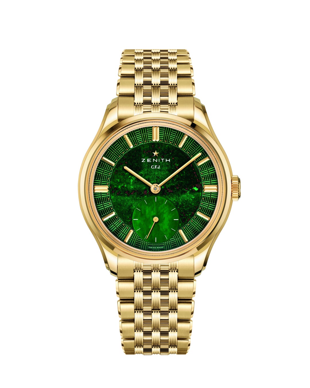 ル・ロックル / ジュネーブ、2026年4月14日:伝説的なキャリバーを蘇らせ、高く評価された「G.F.J.」。クロノメトリーの真髄を追求するこのコレクションに、ゼニスは新たな章を記します。ゼニス創業者、ジョルジュ・ファーブル=ジャコのイニシャルにちなんで名付けられた「G.F.J.」は、単なる復刻モデルではなく、高精度な時計製造の原点回帰を意味します。伝説的キャリバー135に新たな命を吹き込み、2025年のジュネーブ ウォッチ グランプリ(GPHG)でクロノメトリー賞に輝いた「G.F.J.」は、ゼニスが歴史を通じて築いた天文台の計時における専門性を、現代的に表現したタイムピースです。そして今回、ゼニスは161本限定で、印象的なブラッドストーン文字盤を備えたイエローゴールド製の「G.F.J.」を誕生させました。本作は新たな素材の採用という枠を超え、「G.F.J.」が物語を紡ぎ続けるキャリバー135の現代における中心的存在であることを再認識するものです。