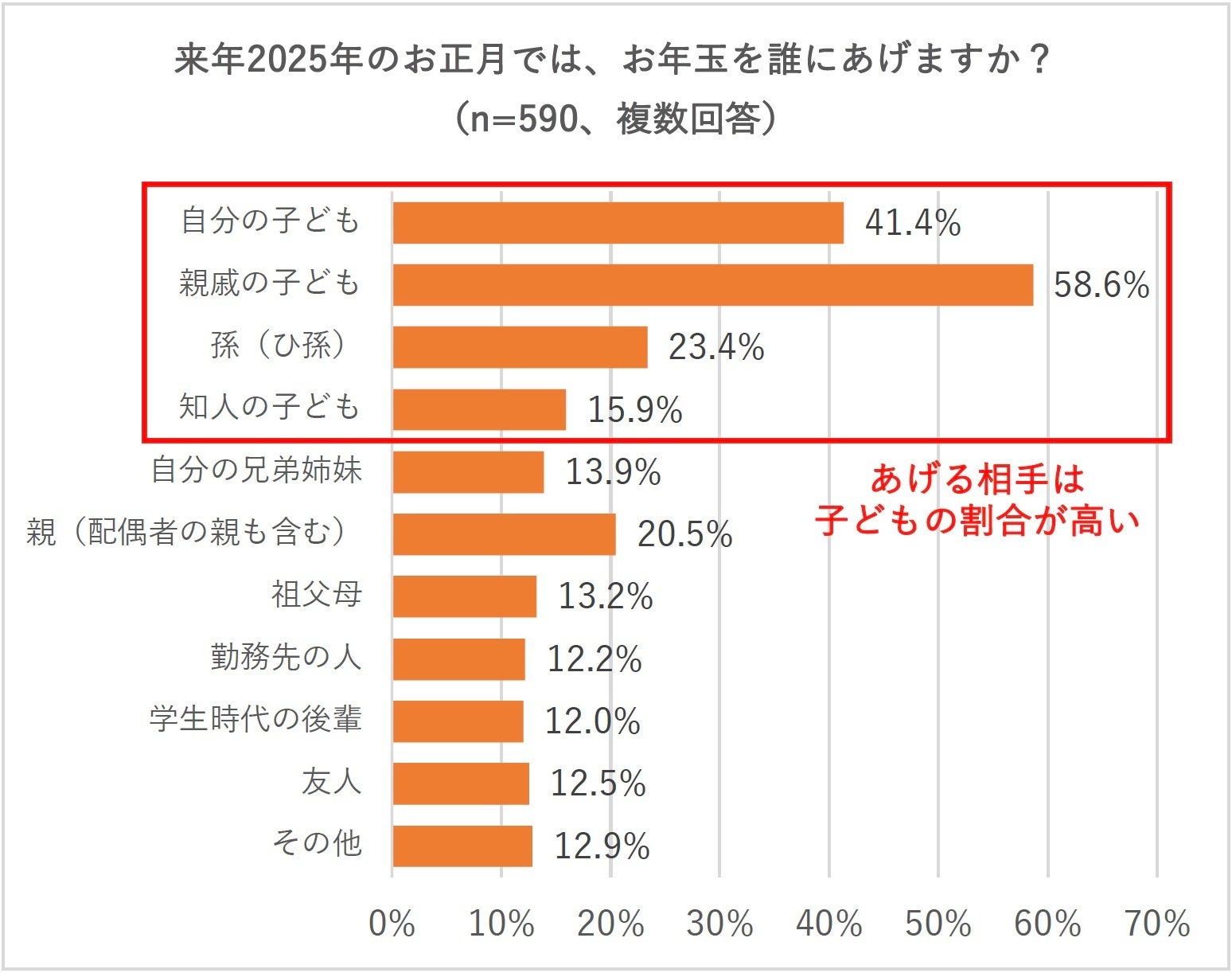 (全国の20代以上の男女2,404名に事前調査を実施。「来年2025年のお正月にお年玉をあげる」と回答したうちの590名に「2025年お年玉に関する実態調査」を実施。)