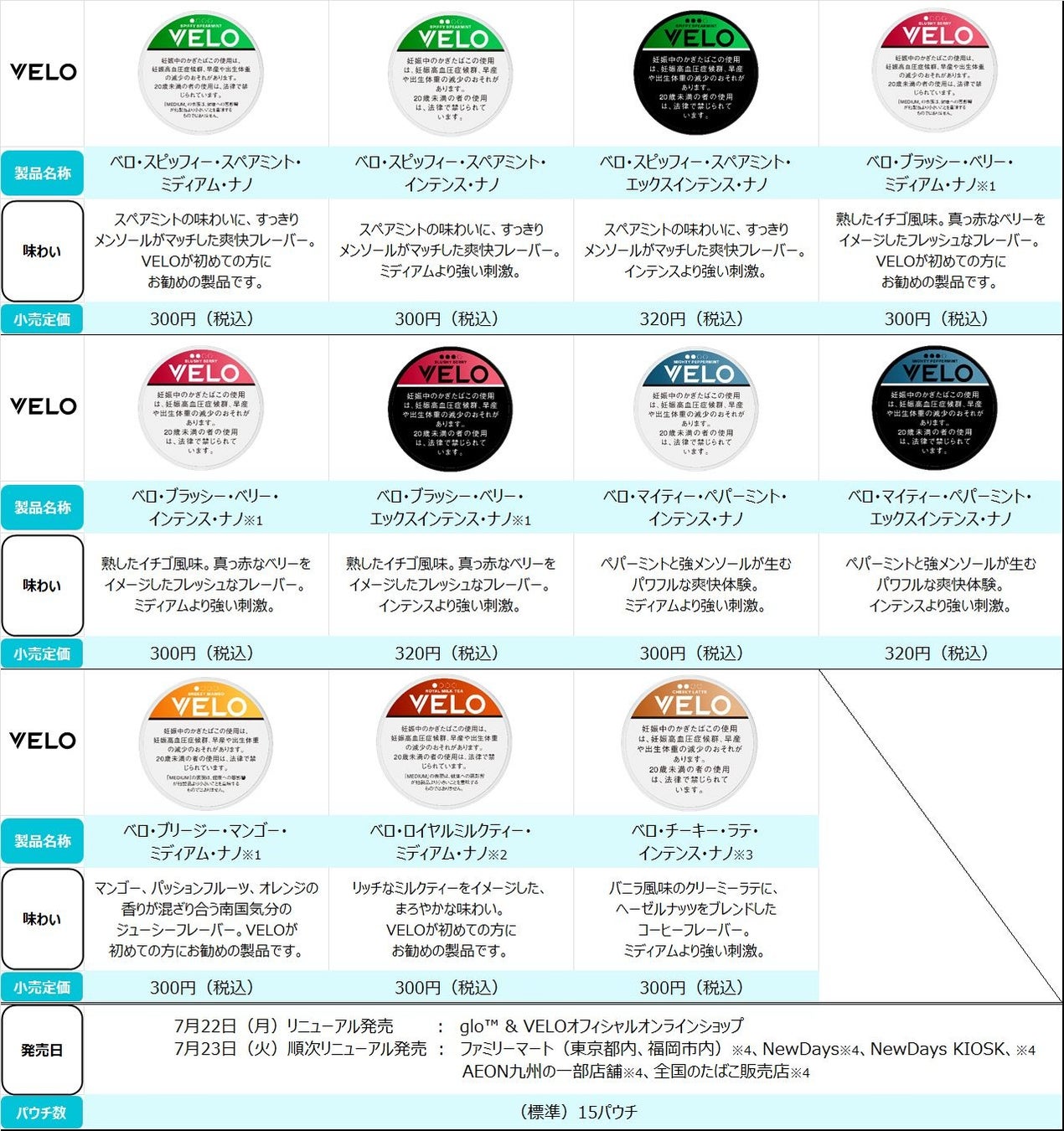 新ジャンル・オーラルたばこ「VELO」、7月22日より順次リニューアル発売