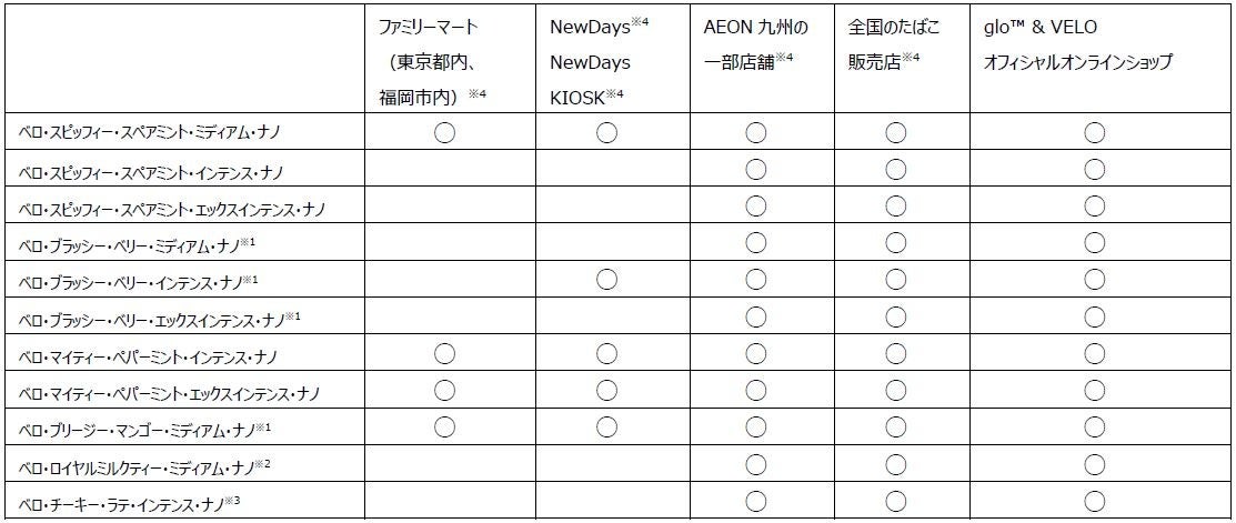 オーラルたばこ「VELO」はたばこ葉を燃焼も加熱もしないことから、煙もニオイも発生せず、また、紙巻たばこと比較して有害性物質の発生が99%低減(※1)されている製品です。日本においては2020年2月に福岡市にて発売されて以来、販売チャネルを徐々に拡大しています。今後も、変化するお客様の好みや嗜好に合わせて多様な刺激・フレーバーの製品を、より身近な場所、そして親和性の高い使用シーンで購入いただけるよう展開してまいります。