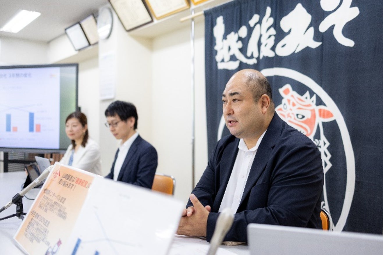 今回の記者会見では、山﨑社長より山﨑醸造が健康経営を進める目的や両宣言に賛同する背景およびそれに伴う働き方改革に関する取組みを、当社コンサルタント桜田陽子・村上健太からは、健康経営を行う必要性や健康経営にも直結する働き方改革の取組み、男性育休が少子化対策につながる理由や勤務間インターバルが生産性向上に不可欠である背景を説明しました。
