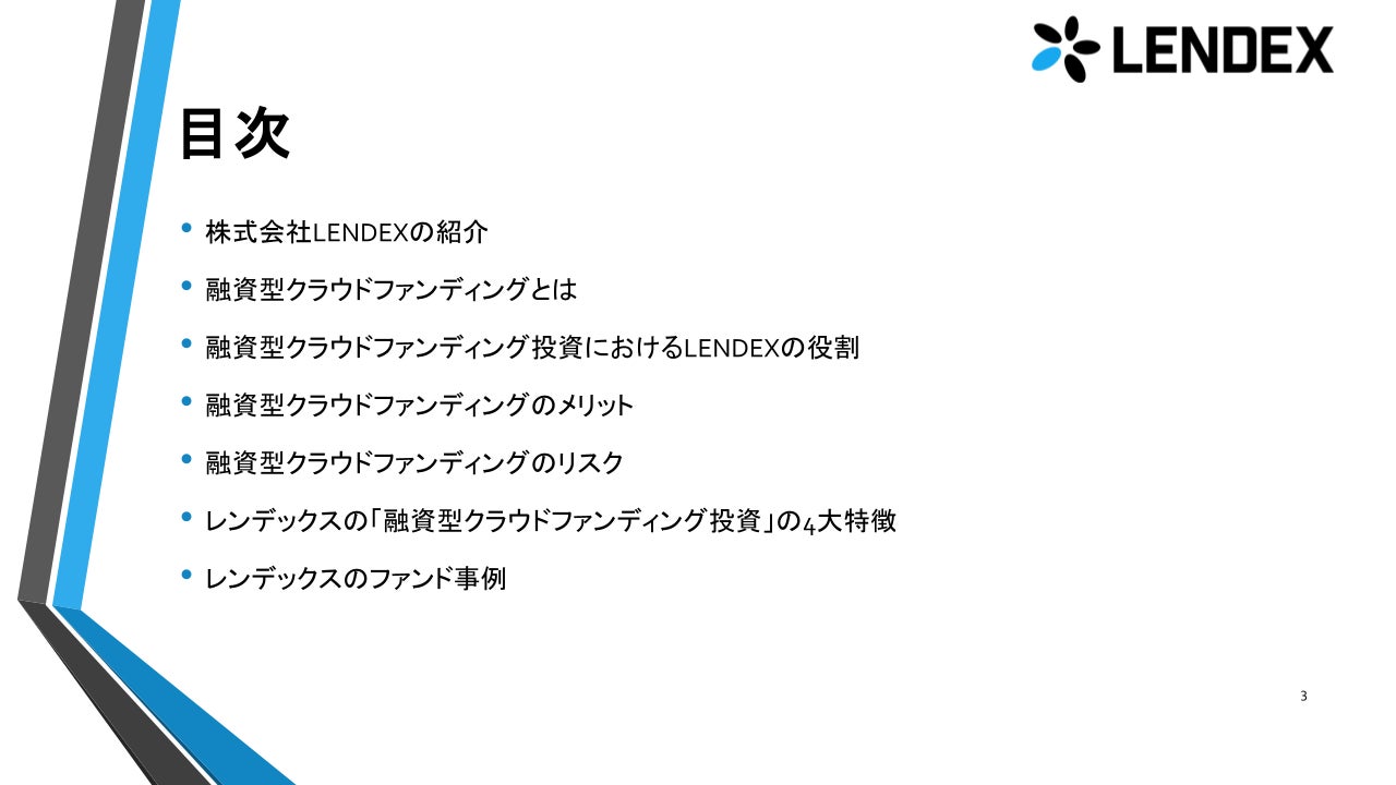 融資型クラウドファンディング「レンデックス(LENDEX)」が投資家の皆様のお役に立つ情報提供を目指し「融資型クラウドファンディング初心者向けセミナー」を開催しました。