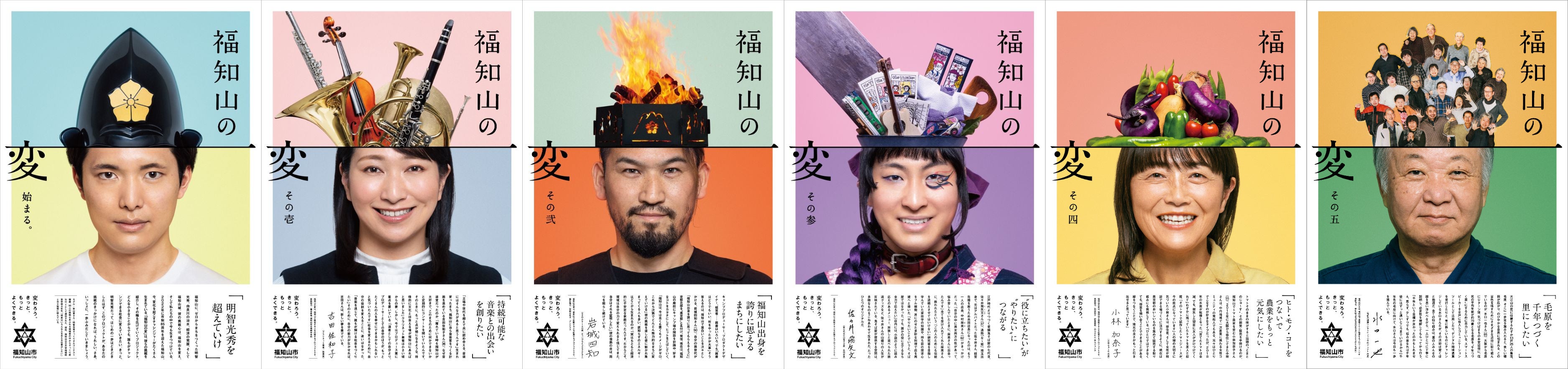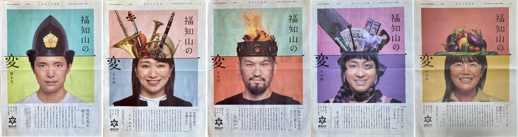 「福知山の変」とは、広告界で活躍するクリエイターと市役所職員がタッグを組んで、まちの礎を築いた光秀を超えていくような挑戦をし、このまちに変化をもたらす人を紹介する、市民参加型のシリーズ企画です。新聞全面広告やポスターを通じて発信しています。