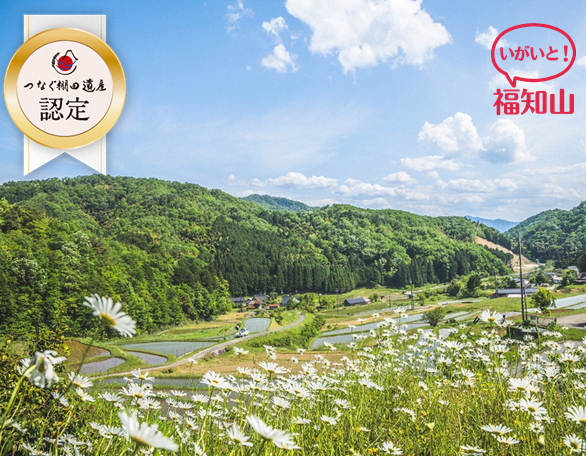 酒呑童子伝説のある大江山のふもとにある、福知山市大江町の毛原地区。急峻な斜面と小さな谷に囲まれた集落には、大小約600枚の棚田が広がっています。1999年「日本の棚田百選」、2022年にポスト棚田百選の「つなぐ棚田遺産」に認定。田植えの水面に映る青い空と白い雲、収穫時の黄金色に光る稲穂など、四季折々の風景が広がり、伝説と歴史の里に広がる日本の原風景を見ることができます。