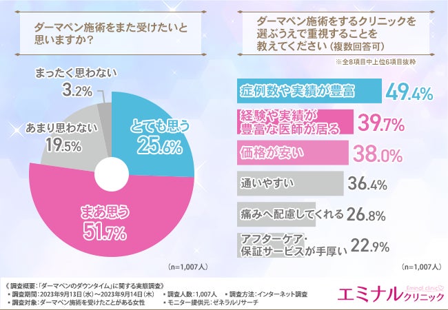 およそ8割がまた受けたいと回答!ダーマペンの施術をするならどんなクリニックを選ぶ?