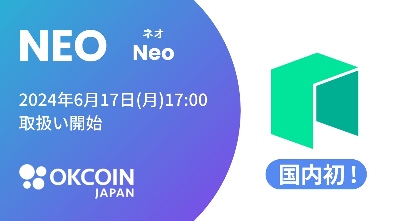 当社は、OKCoinJapan(暗号資産取引所)にて、『ネオ(NEO)』を2024年6月17日に取扱い開始することをお知らせいたします。これにより、OKCoinJapanは、41種類の暗号資産を取扱うことになります。