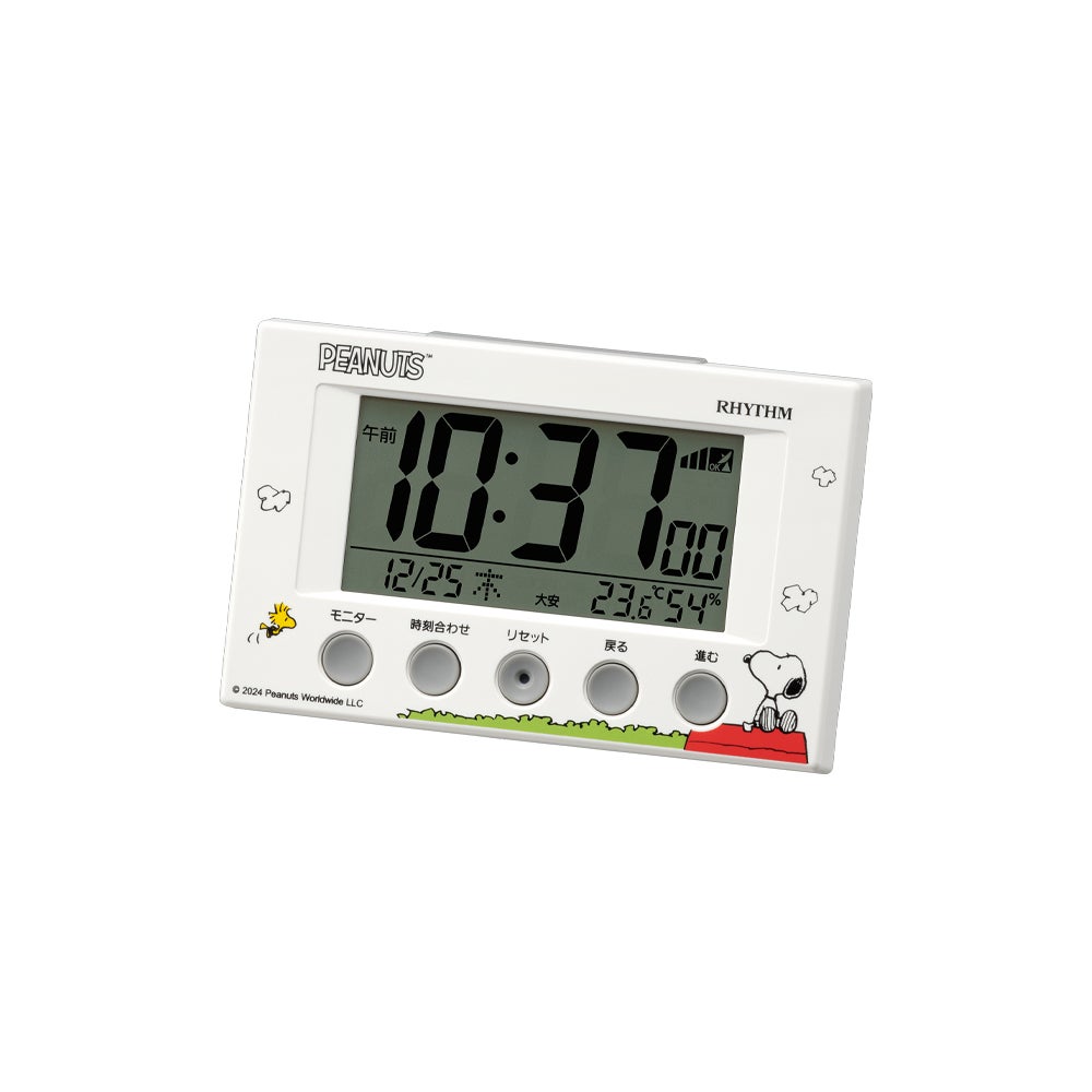 くらしになじみやすいシンプルなスヌーピーデザインの電波デジタルめざまし時計です。