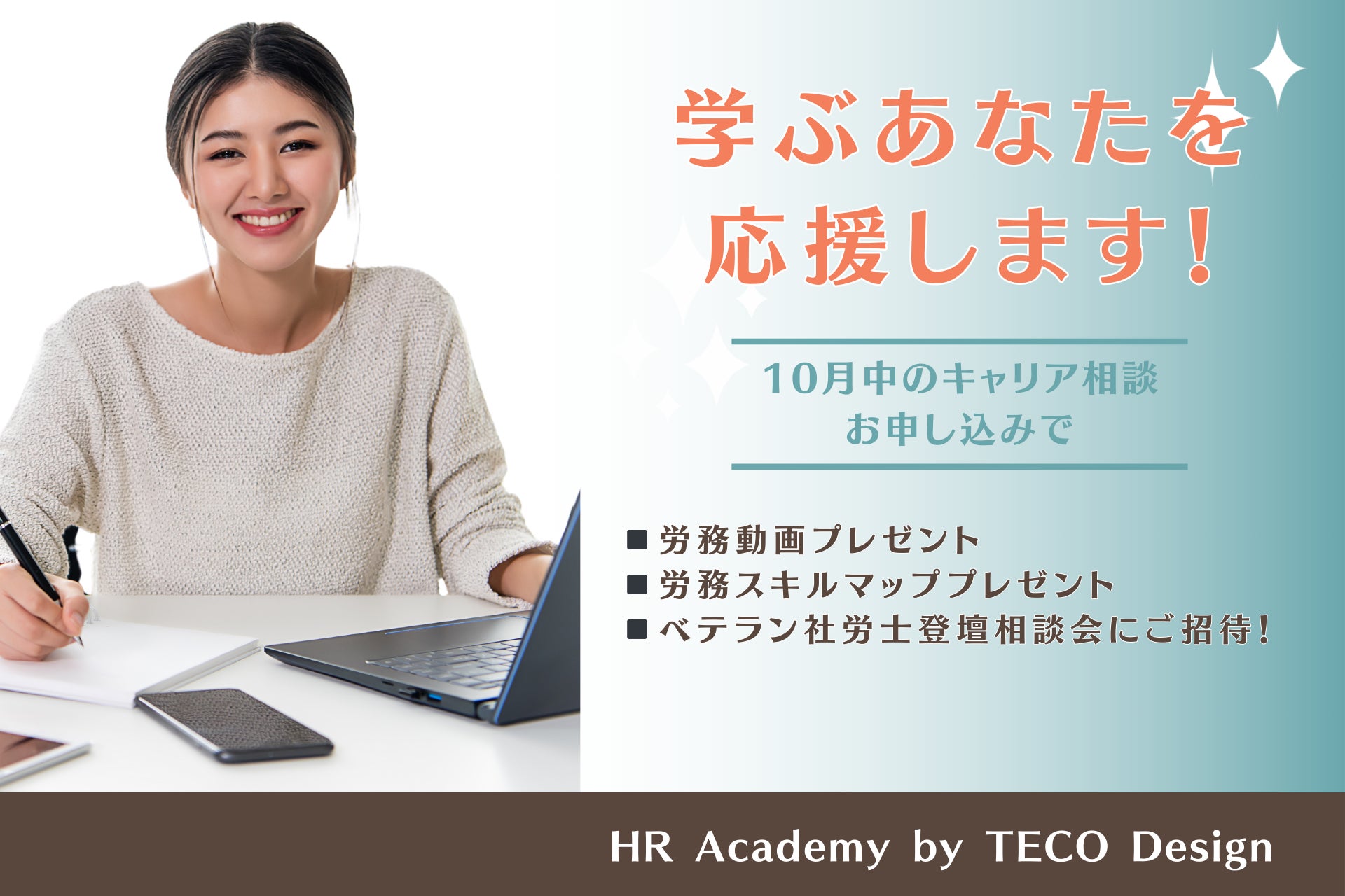 \学ぶあなたを応援キャンペーン/10月中のキャリア相談お申込みで、労務お試し動画プレゼント&ベテラン社労士登壇相談会にご招待!