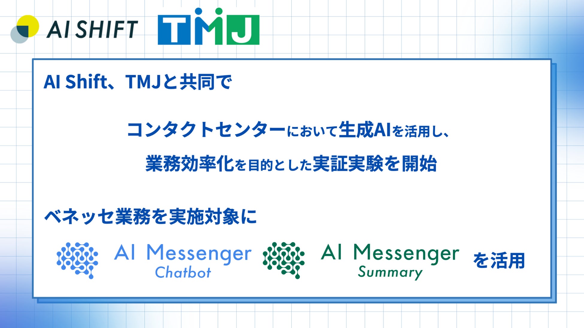 AI ShiftとTMJが共同で、コンタクトセンターにおいて生成AIを活用し、業務効率化を目的とした実証実験を開始