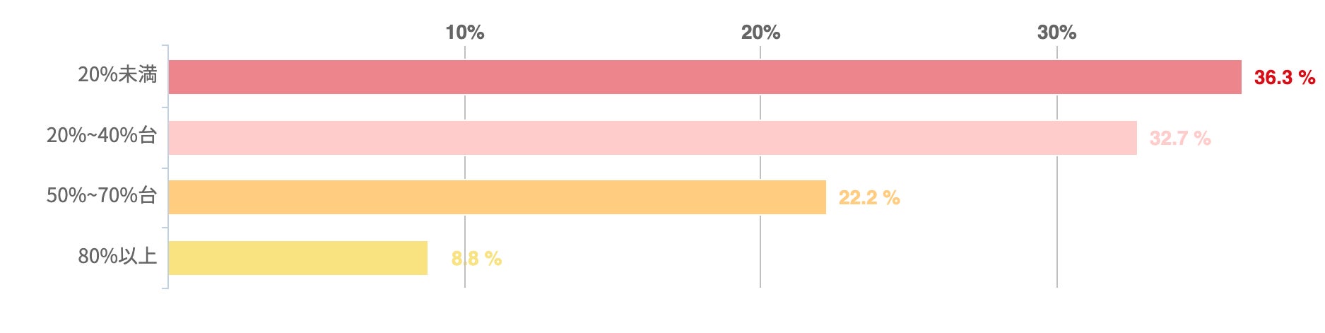 アンケートによれば、50代の保有資産に占める運用資産の割合は、「20%未満(36.3%)」および「20%〜40%台(32.7%)」が全体の60%以上を占める結果となった。