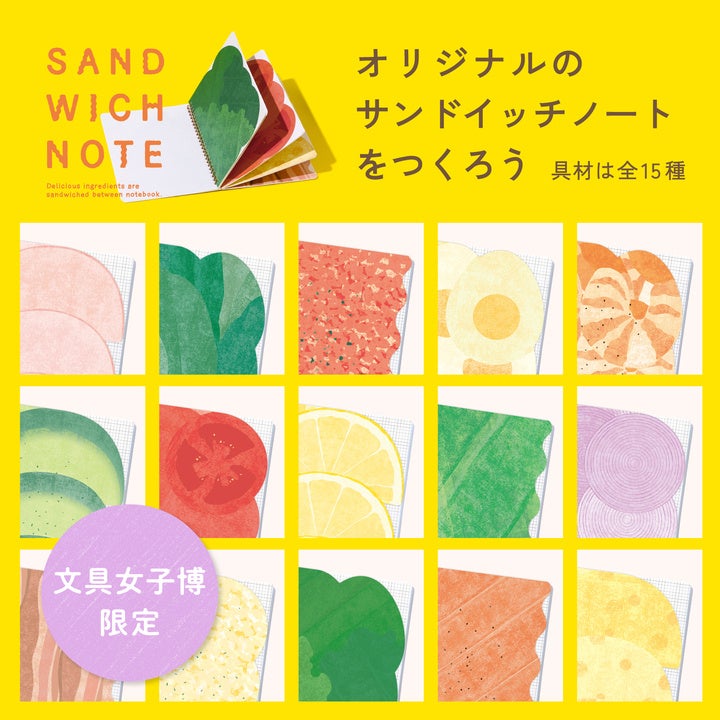 15種類の具材から4枚をセレクトして、オリジナルのSANDWICH NOTEが作れる会場限定の商品です。リング製本機もご用意し、その場でノートが作られる瞬間も見ていただけます。数量限定のためお早めに!