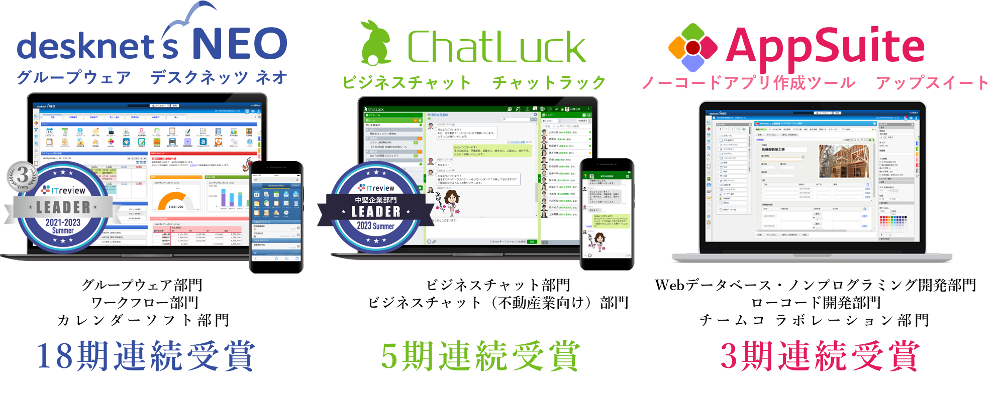 グループウェア『desknet's NEO』・ビジネスチャット『ChatLuck』ノーコードアプリ作成ツール『AppSuite』がそれぞれ受賞