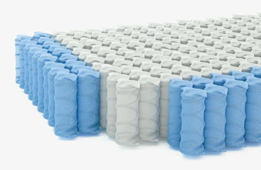 個別に包装、または「ポケット」に入れられたスチール スプリングコイルで構成。ZINUSでは、異なる線径のコイルを用い、多様な寝心地のマットレスを開発しています。