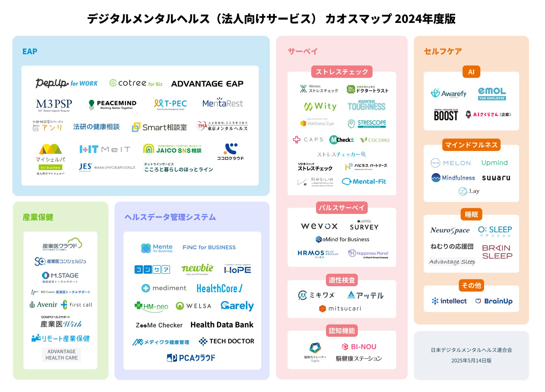 「デジタルメンタルヘルス(法人向けサービス) カオスマップ 2024年度版」を日本デジタルメンタルヘルス連合会が公開!