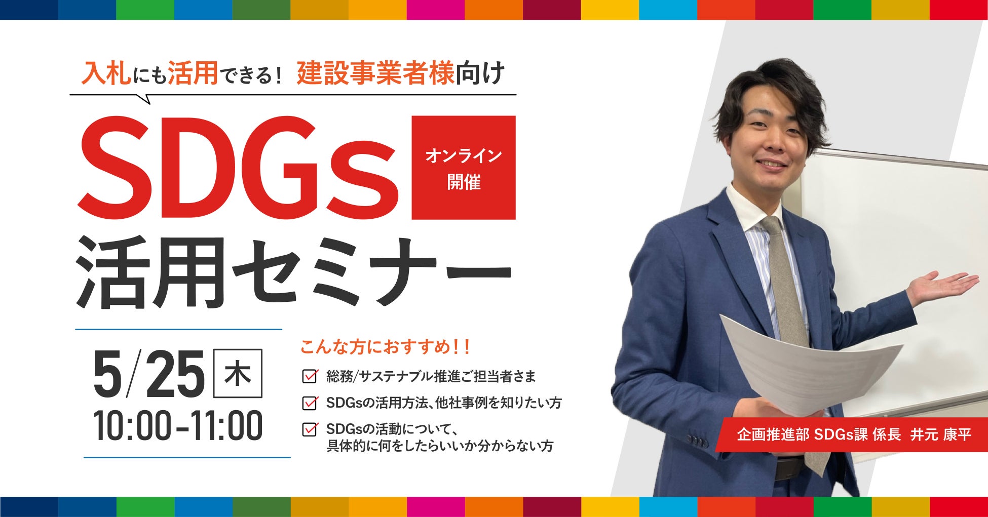 【無料ウェビナー】『建設事業者様向け SDGs活用セミナー』5/25(木)10:00-11:00開催