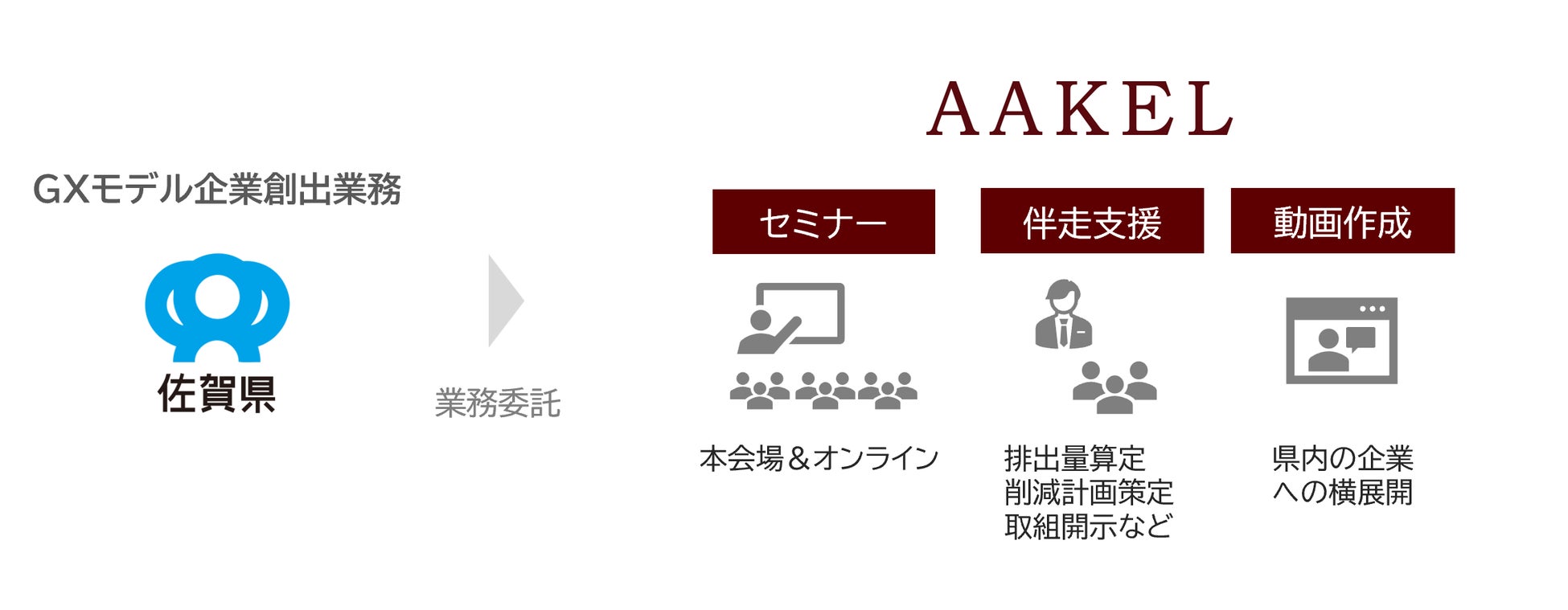本業務は、公募により決定した佐賀県内の企業に対し県が伴走支援を行うことにより、脱炭素や温暖化対策を経済の成長・発展につなげるGXのロールモデルとなる企業を創出するとともに、そこで得られた知見や取組事例等を横展開することで、県内企業のGXの取組を支援するものです。