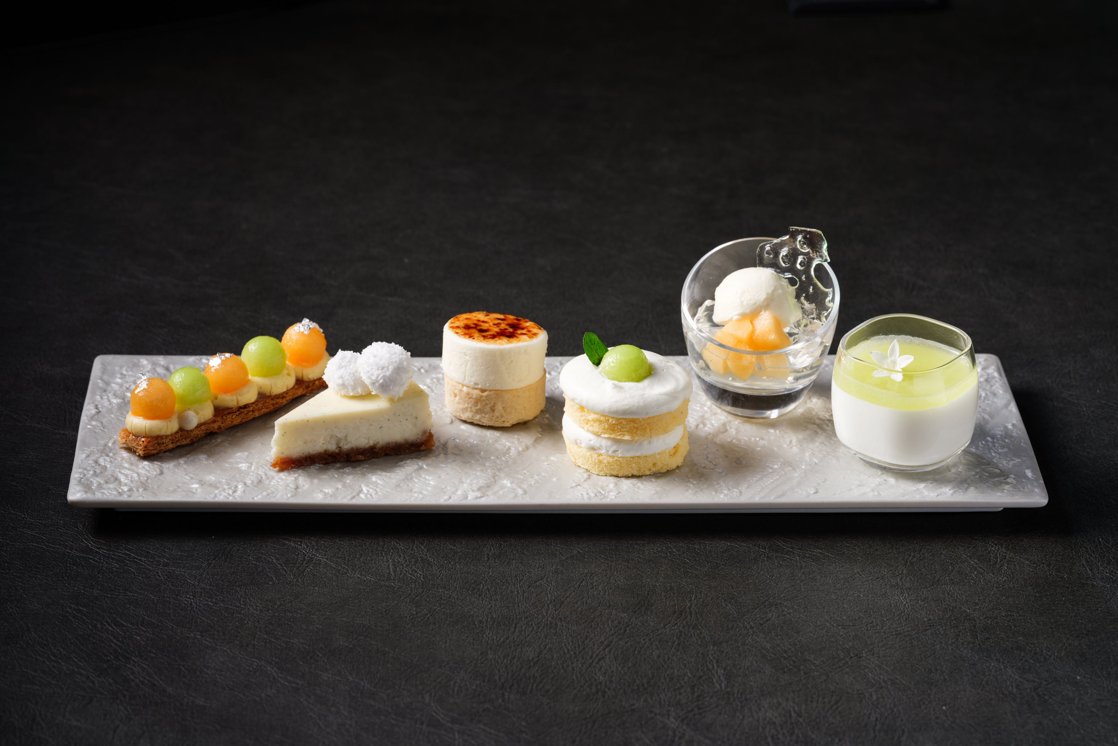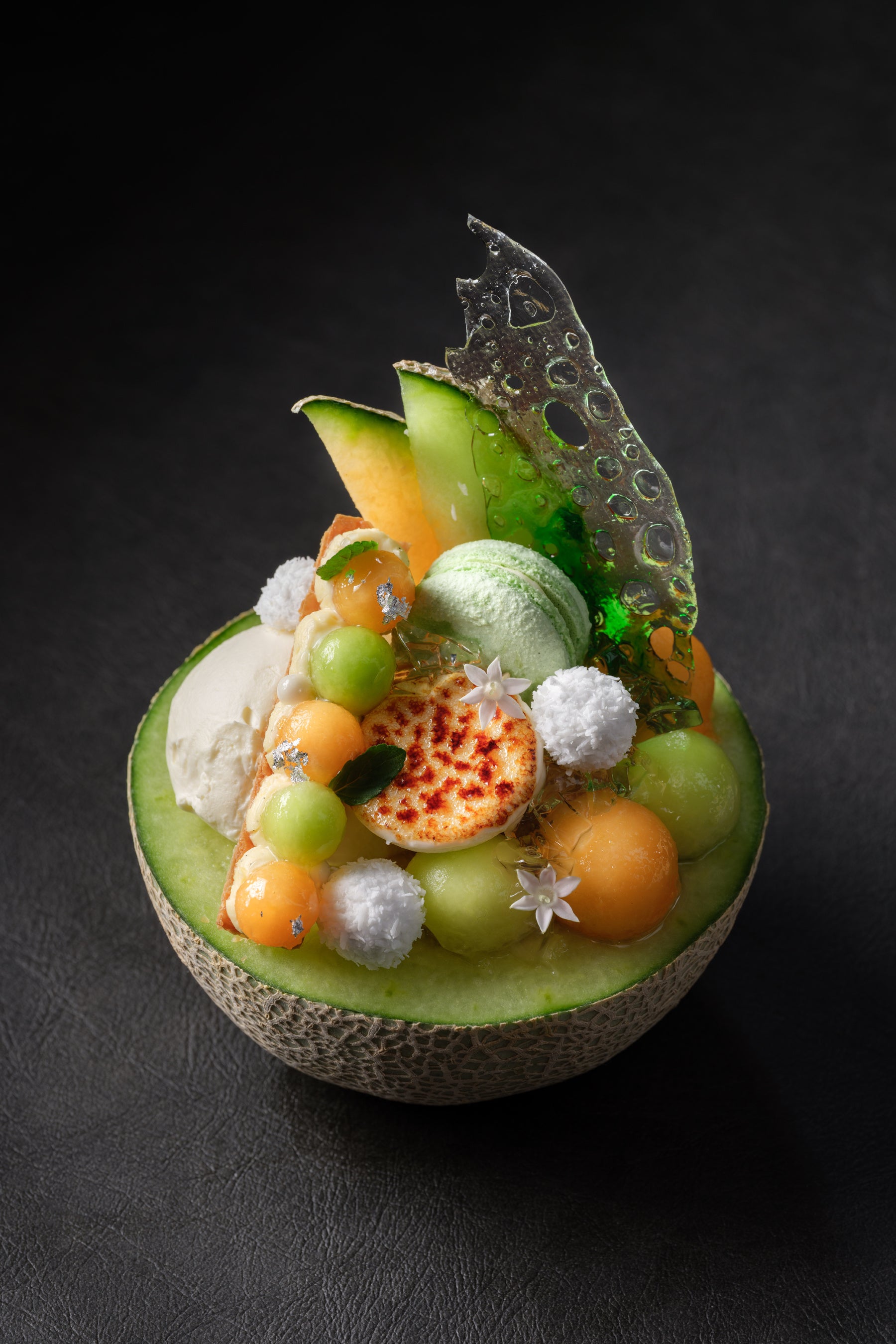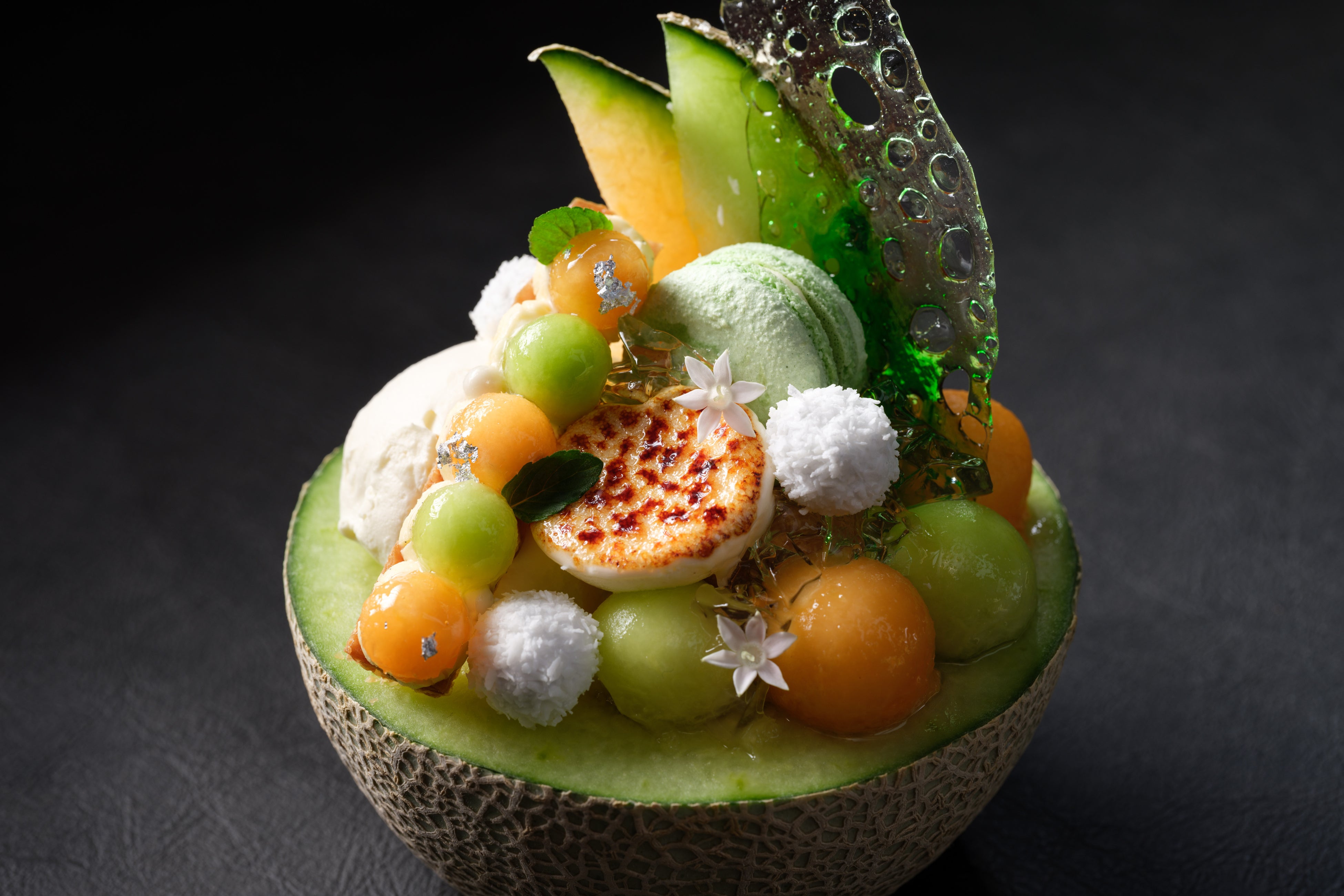 また、セイボリーには、王道の生ハム&メロンをはじめ、爽快感が広がる赤肉メロンのセビーチェ、金沢のノトヒバカラベーカリー特製メロンパンにスパイシーチキンを挟んだバーガーなどをラインアップ。メロンそのもののテイストはもちろん、ユニークなコンビネーションにもご注目ください。フレッシュな果肉の旨みと余韻、多様な素材、そして遊び心あふれる調理や演出が響き合う初夏のハーモニーを、この機会にご賞味されてはいかがでしょう。