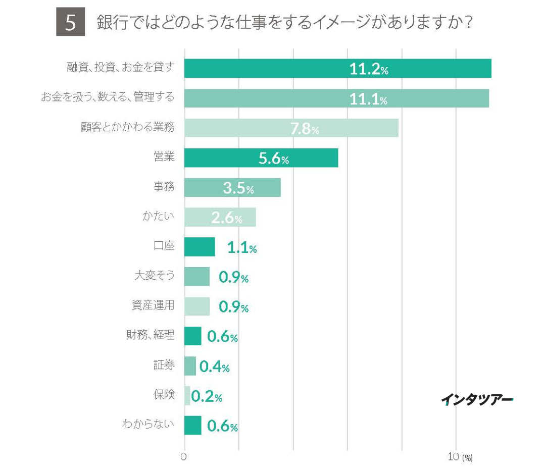 設問5では銀行の具体的な仕事のイメージについて聞きました。(自由回答からキーワードを集計)