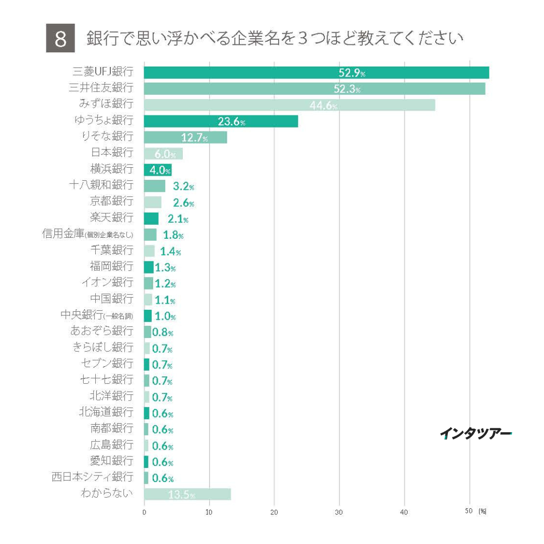・【知っている企業名】三大メガバンク+ゆうちょ銀行の回答が多数