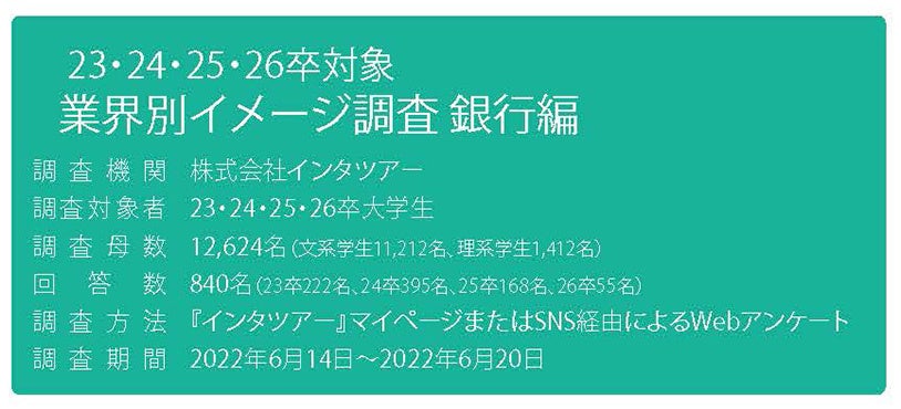 『23・24・25・26卒生対象 業界別イメージ調査銀行編』2022年6月実施【株式会社インタツアー】