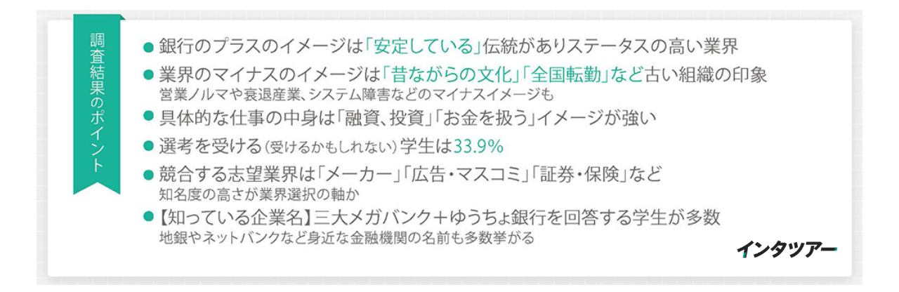 株式会社インタツアー(代表:作馬 誠大、本社:東京都港区浜松町2-4-1世界貿易センタービル南館)は、23卒~26卒学生を対象とした調査『業界別イメージ調査銀行編』の結果を発表しました。