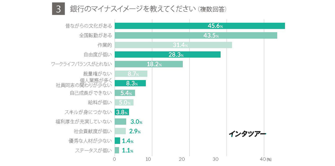 ・業界のマイナスのイメージは「昔ながらの文化」「全国転勤」など古い組織の印象