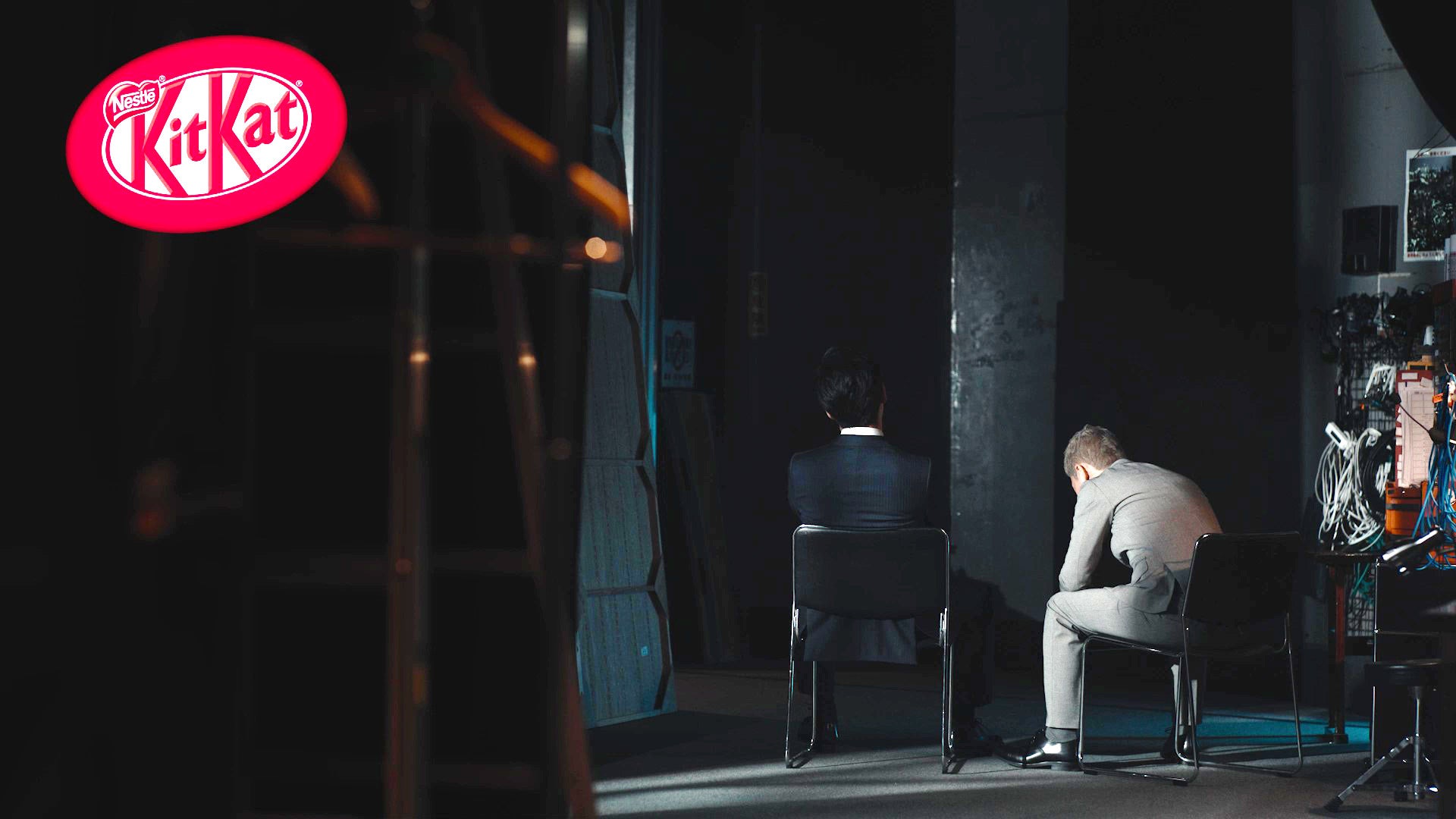 「キットカット リトル」新CM -舞台袖編-では、普段テレビでも見るようなお笑いグランプリの舞台袖から始まり、緊張な面持ちの嶋佐さんが『おれたち勝てるかな?』とつぶやきます。長年相方を務める屋敷さんが「キットカット」を取りだし『いつも通りいこうや!』と嶋佐さんを鼓舞し二人で優勝を狙って“勝ちに行く”ようなリアリティ溢れる舞台裏を表現した新CMです。