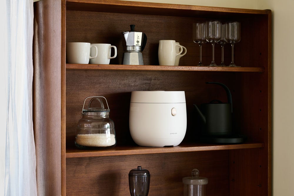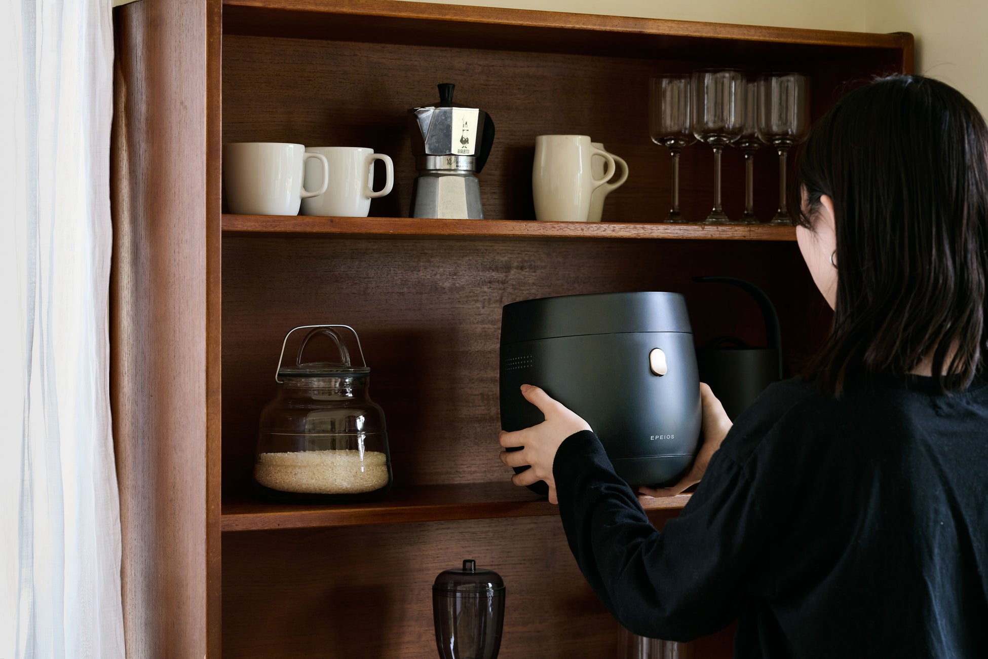 ミニマルで無駄のない“おひつ”のようなデザインを採用したことで、使用しないときはコンパクトなキッチンや食器棚などに収納することが可能になったことで、暮らしの空間に馴染む使用となりました。