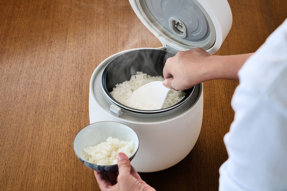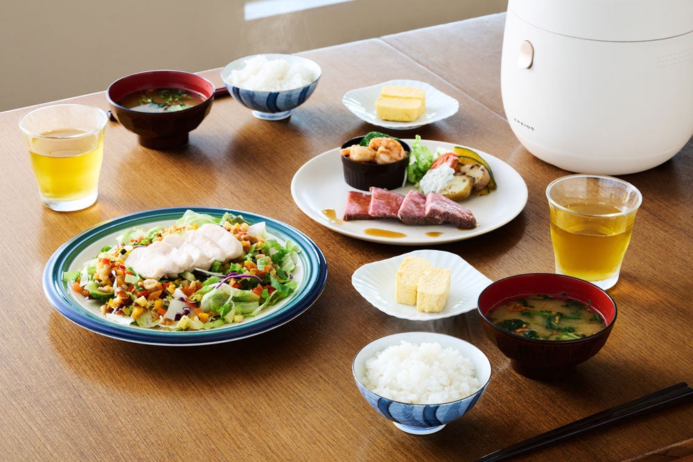 コンパクトにも関わらず、白米は1合から最大4合まで、玄米は1.5合まで炊くことができます。また、低温調理モードを搭載しており、サラダチキン、ローストビーフ、*温泉卵などがつくれるため、料理初心者、一人暮らしで調理道具が揃っていないという方にも簡単に低温調理を楽しんでいただけるため、1〜3人暮らしの方におすすめです。