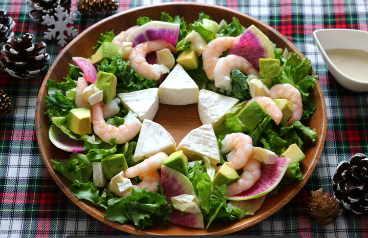 簡単にできるリースサラダです。紅芯大根の赤色が鮮やかで、クリスマスの1品におすすめです。