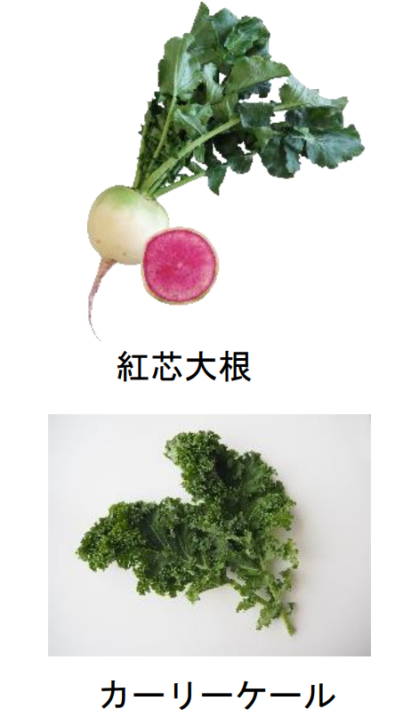 鮮やかなピンク色の紅芯大根や、ふんわりとボリューム感のあるカーリーケールが、クリスマスやお正月など年末年始のハレの日の食卓に彩りを添えます。