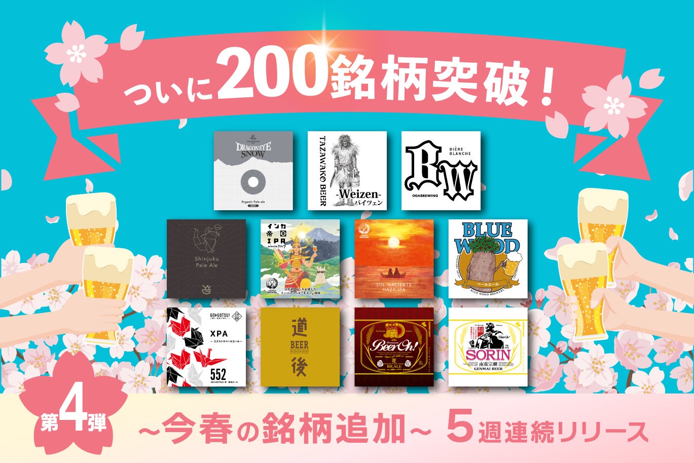 なお、『今春の銘柄追加』として4月末まで5週連続でリリースをし、新規参画ブルワリーを含め取り扱い数は200銘柄を突破予定となります。