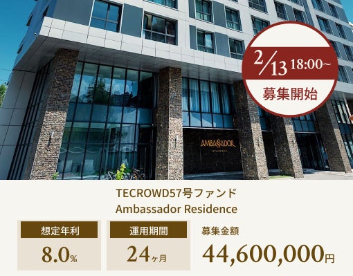 この度新たに57号ファンド 「Ambassador Residence」の情報を2024年2月2日より公開し、2024年2月13日18時より募集を開始致します。