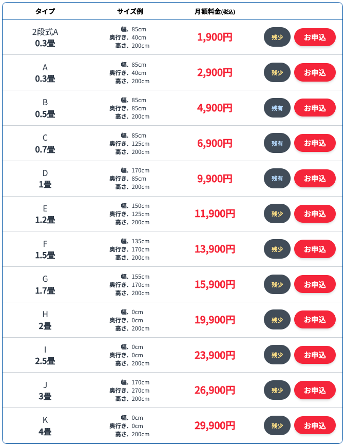 荷物以上に大きな部屋を借りてしまうことや、狭すぎて荷物が入らなかったなんていうトラブルを回避できます。