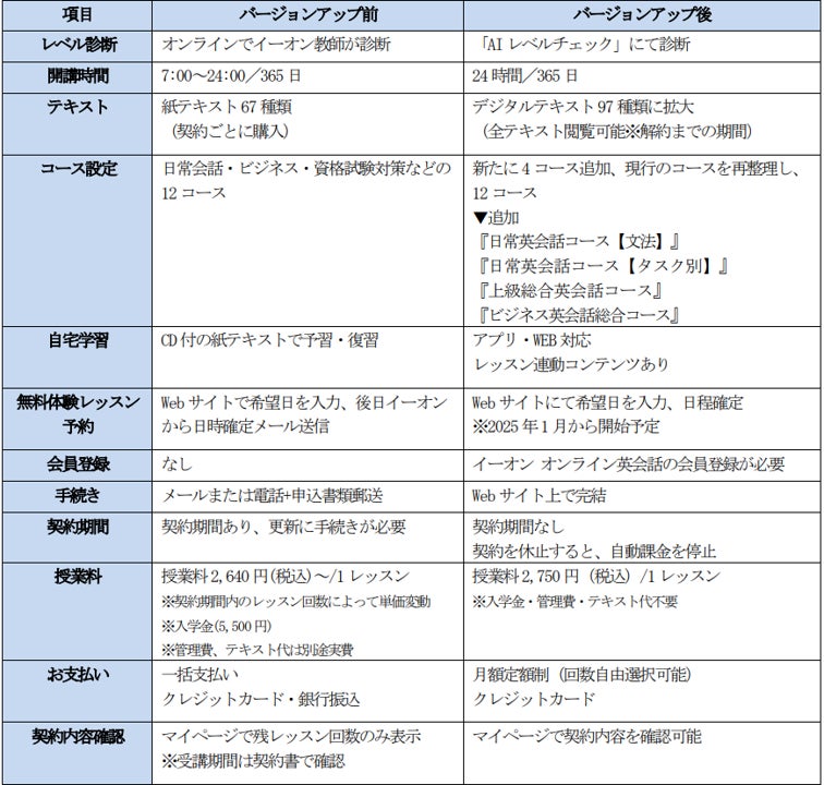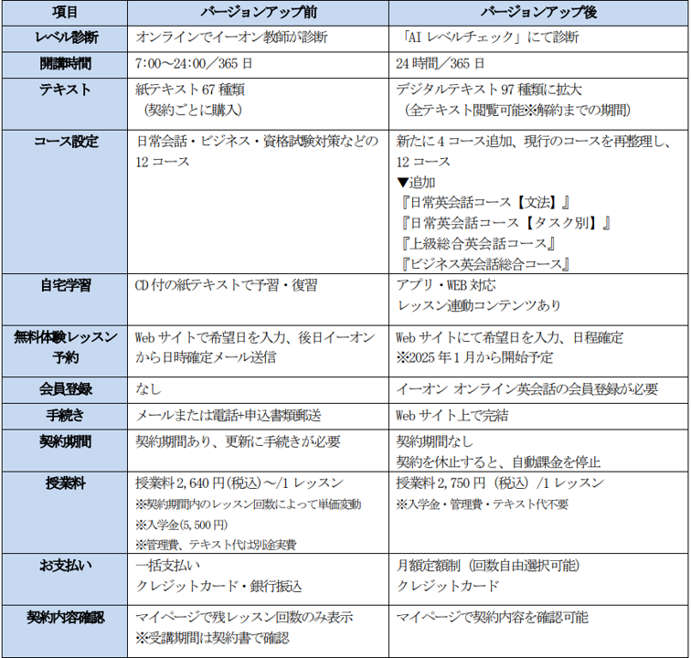 ■バージョンアップ後のイーオン オンライン英会話(詳細は各項目をご参照ください)
