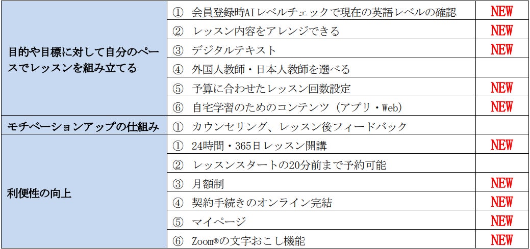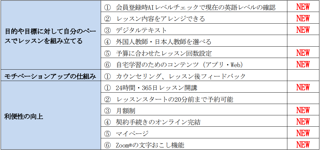 生徒様により便利にご利用いただくために、オンラインレッスンならではの利便性をさらに向上させました。英語学習面のみならず、システムやお手続き面なども含めたトータルでの使いやすさ・学びやすさを整えていきます。