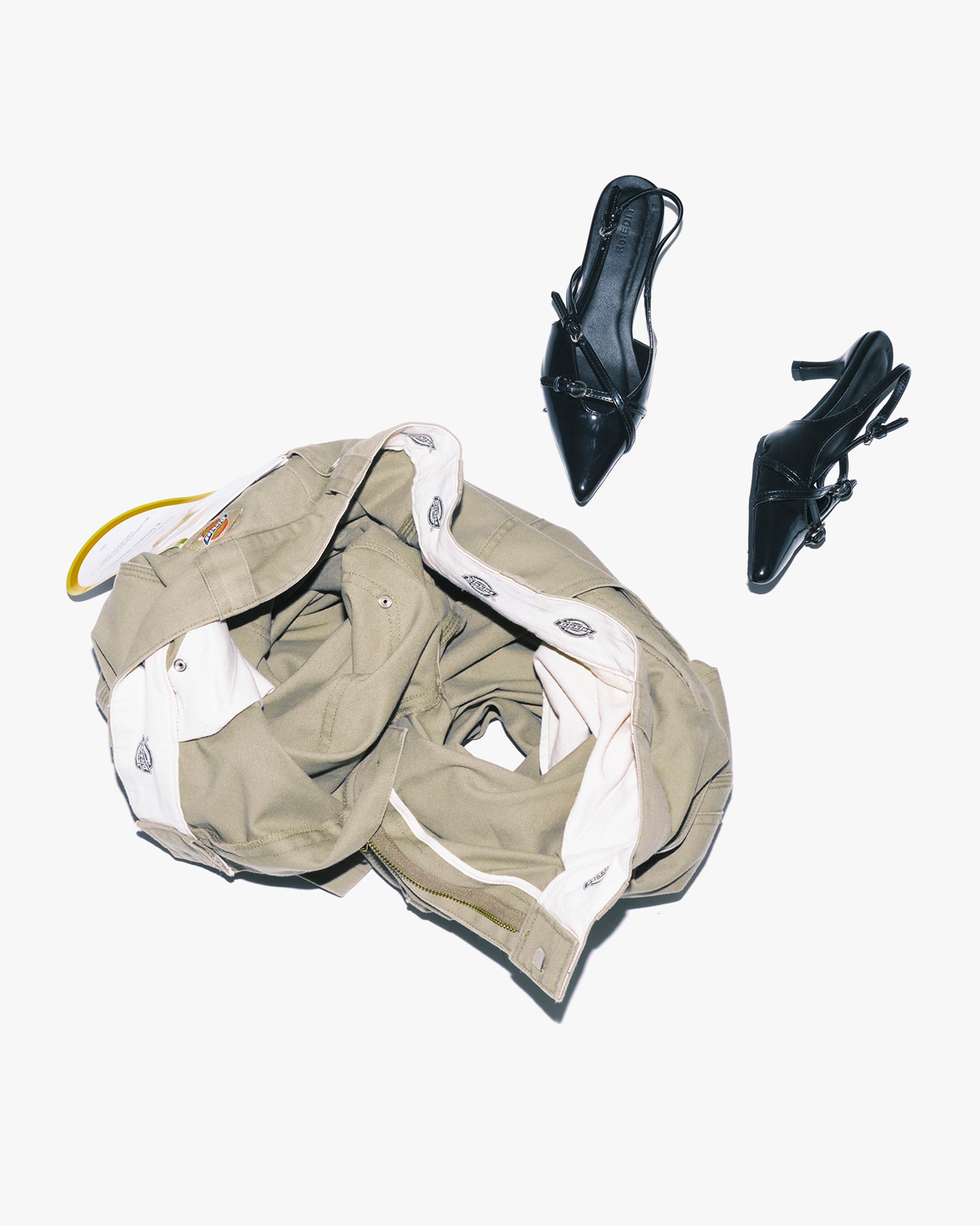 両ブランドのアイデンティティを掛け合わせた、特別なボトムスへと再解釈しました。 最大のポイントは、堅牢でタフなT/Cツイル素材にビンテージウォッシュ加工を施している点。製品段階から古着のような柔らかな風合いを持たせることで、履き始めから体に自然と馴染む快適な着用感を実現しています。ワークウェア由来の無骨さと、CONZらしい洗練されたシルエットが共存する一本に仕上がりました。
