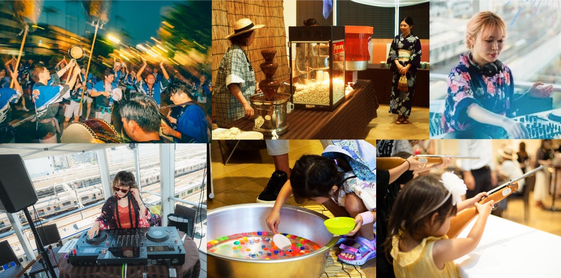 「音楽と踊りが織りなす、忘れられない夏のひととき」をコンセプトに、「⾳と旅と株式会社」率いる豪華DJ陣によるDJプレイと阿波踊りチーム「東大連」によるスペシャルパフォーマンス、夏祭り縁日など、大人も子どもも楽しめるイベントで皆さまをお迎えいたします。新旧あらゆるカルチャーが混在する錦⽷町だからこそ実現できる、ホテルでのスペシャルイベントをぜひこの機会にお楽しみください。